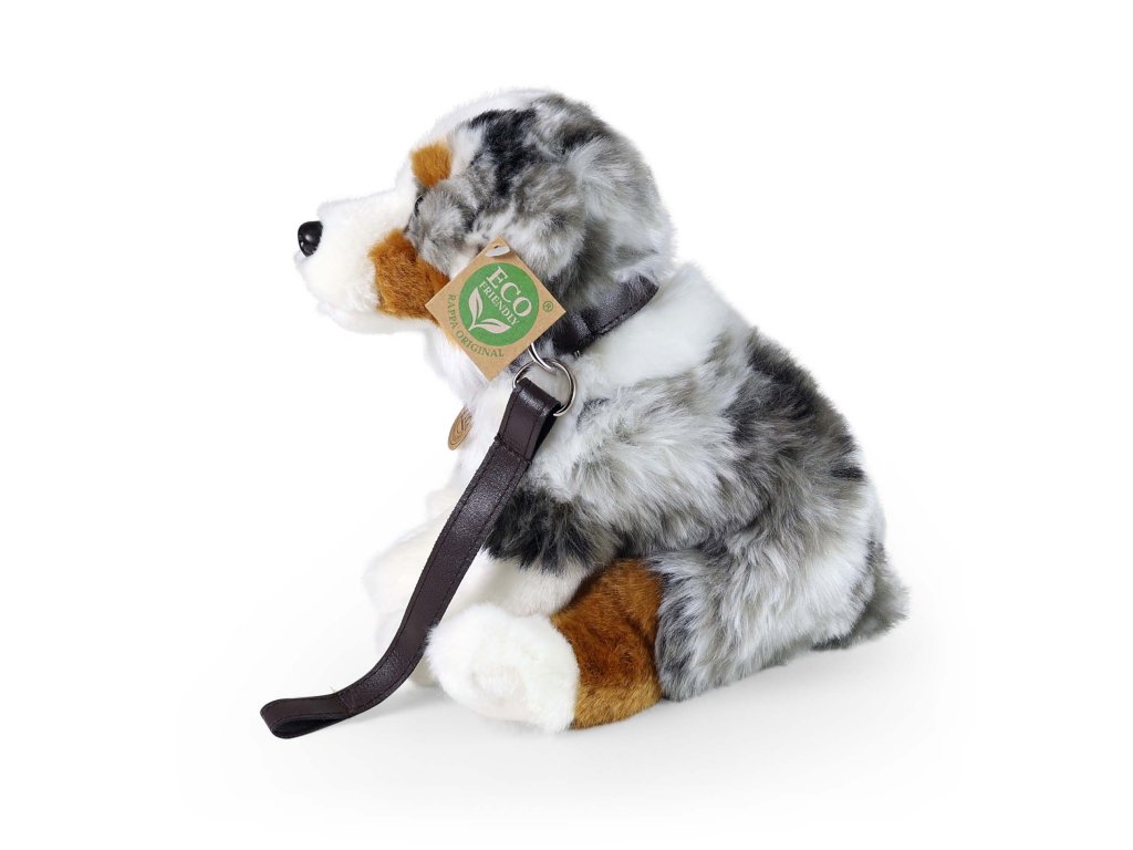 Plyšový pes australský ovčák s vodítkem 27 cm ECO-FRIENDLY