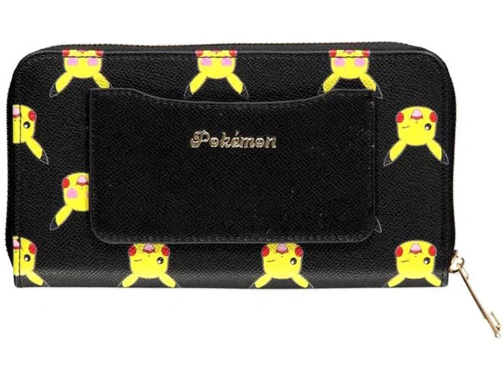 Černá peněženka ve tvaru psaníčka inspirovaná postavičkou Pikachu.