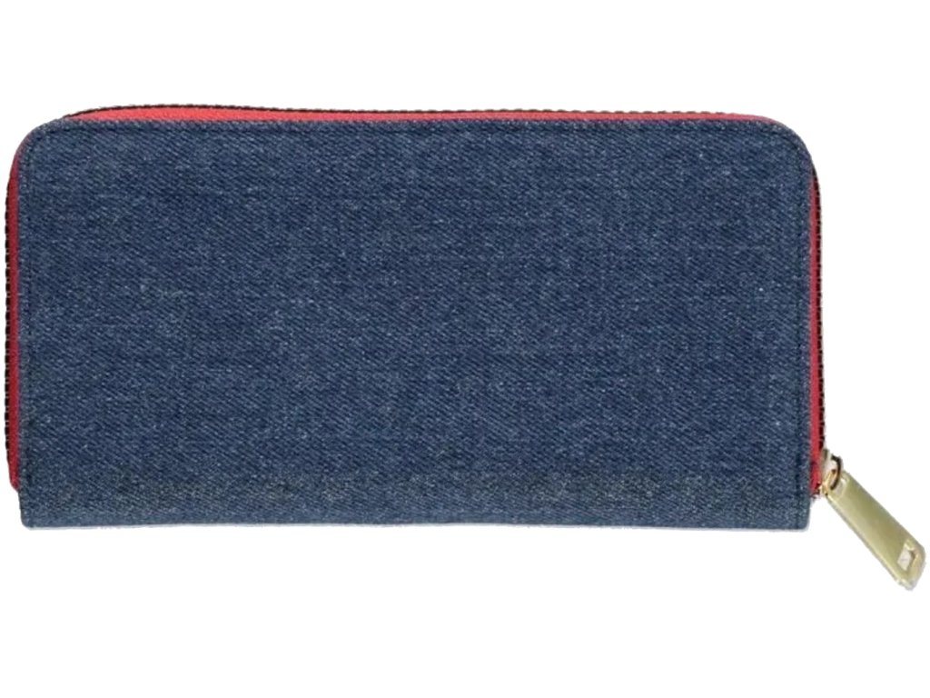 Modrá peněženka se zapínáním na zip, s přihrádkami na karty a zapínací částí na mince. Na přední straně peněženky je vyobrazený znak Avengers.