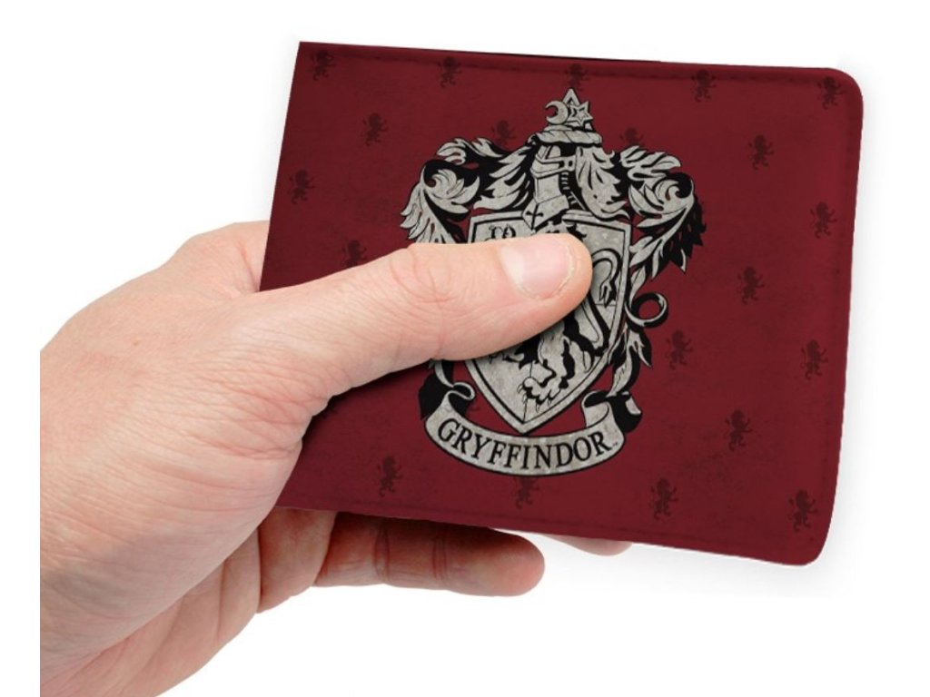 Červená peněženka s grafikou erbu koleje Nebelvír (Gryffindor) ochrání vaše doklady před každou černou magií. Skvělý společník pro fanoušky Harryho Pottera, který pojme bankovky, mince, platební a ID karty, stejně tak jízdenky, vstupenky a další nezbytnosti.