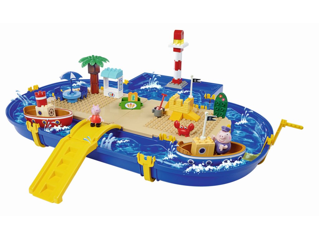 Big vodní svět s širokými kanály a přístavem. Snadno se instaluje a dokonale těsní. Obsahuje 47 různých herních dílků. Velké herní desky ke stavění. Včetně 2 lodiček z animovaného seriálu Prasátko Peppa a 3 herních figurek Peppa, děda a krab. Kompatibilní s jinými známými kostičkami. Vyrobeno z plastu odolného vůči UV záření. Rozměry: 87 x 75 x 30 cm.