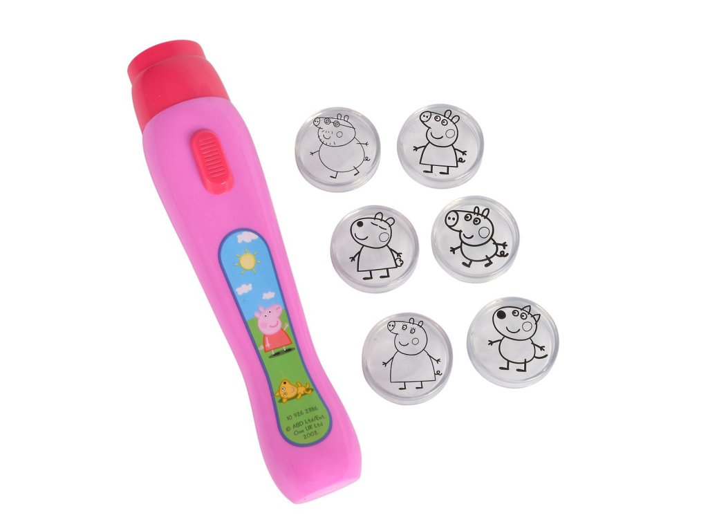 Světelný LED projektor se 6 vyměnitelnými obrázky s oblíbeným prasátkem k promítání např. na zeď. Velikost projektoru 16 cm.
