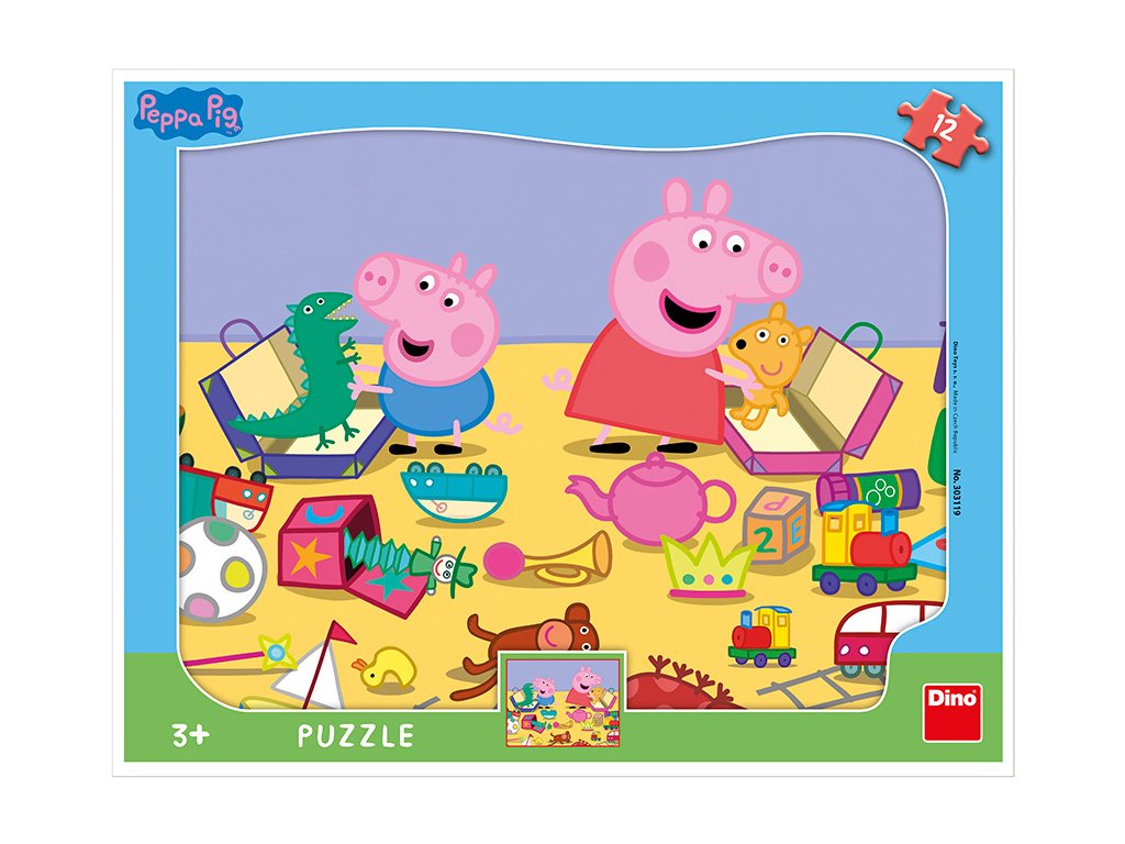 Dětské deskové puzzle s 12 tvarovými dílky v rámu s motivem Peppa Pig.