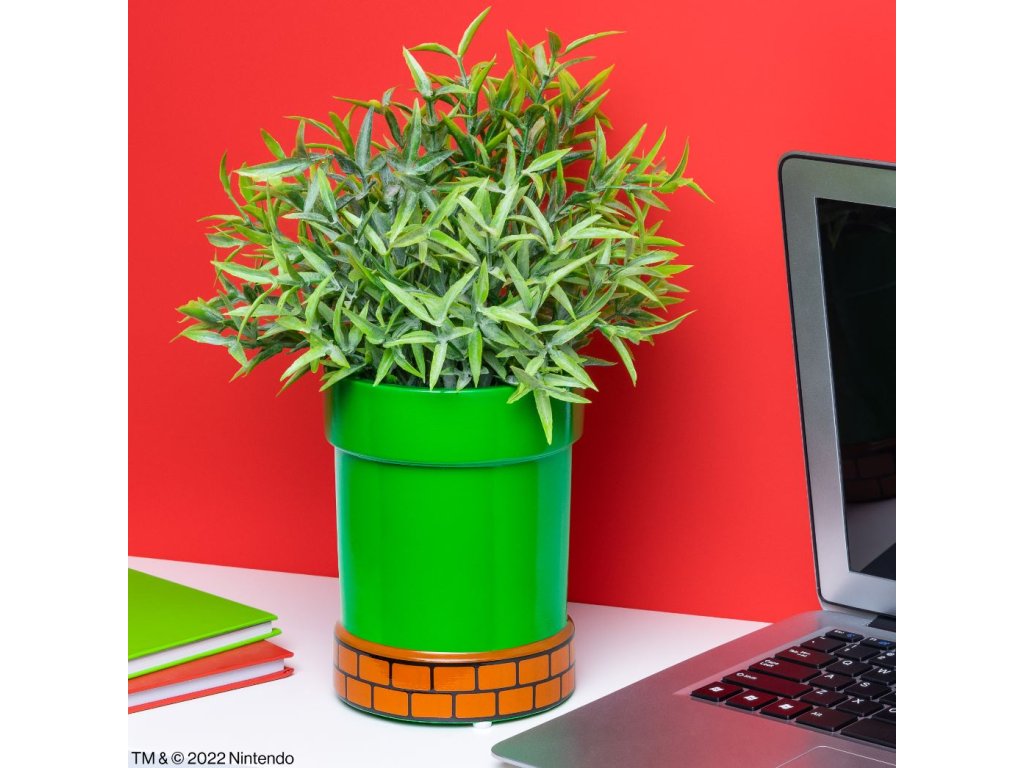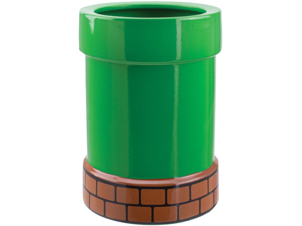 Keramický zelený stojánek na psací potřeby s grafikou Warp Pipe ze hry Super Mario.