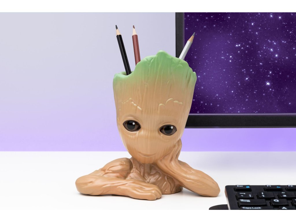 Keramický stojánek na psací potřeby vyrobený ve tvaru postavy Groot z filmové série Guardians of Galaxy (Strážci galaxie) od společnosti Marvel.