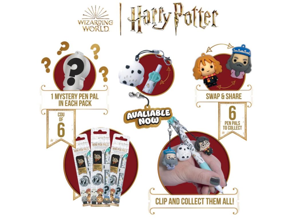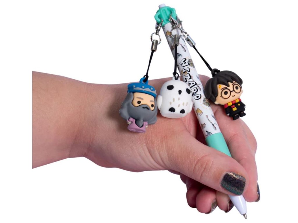 Plastová propiska s připínacími figurkami hlavních postav z filmu Harry Potter. Psací kamarádi mají klip pro připevnění k peru, na pero jich můžete připevnit více.