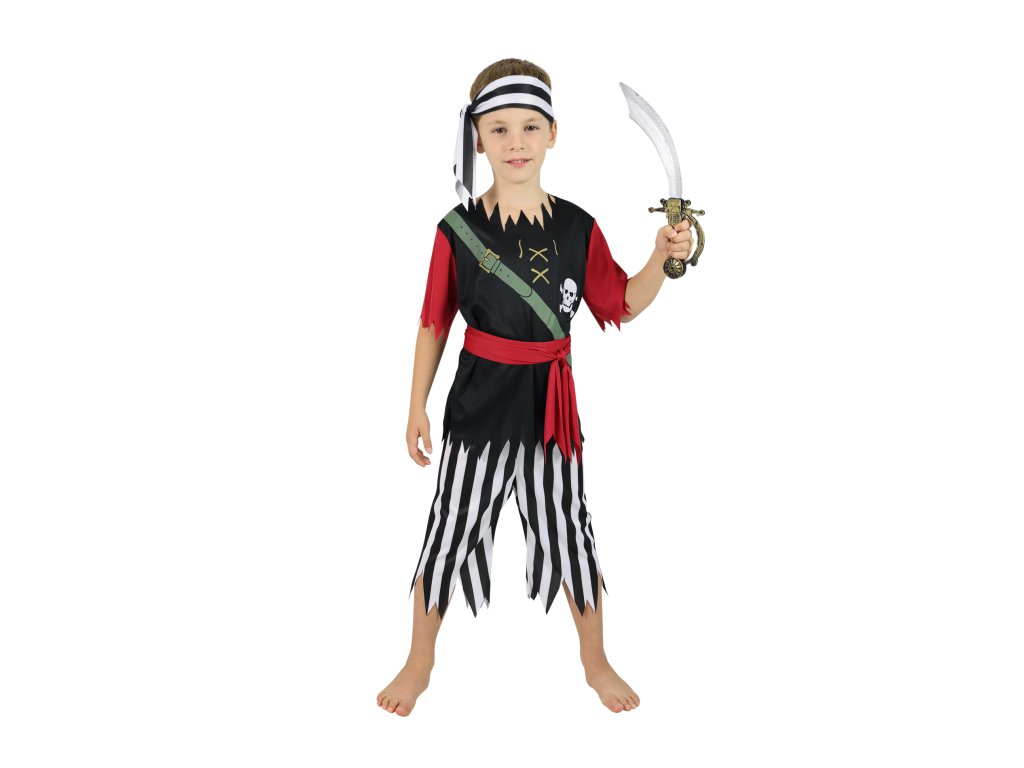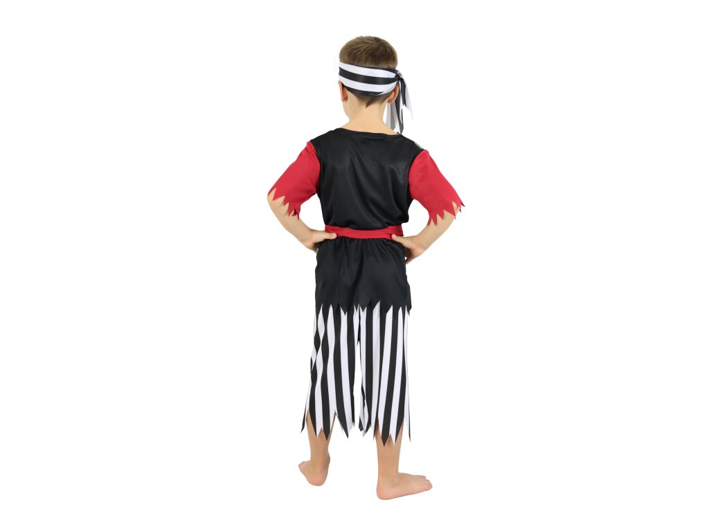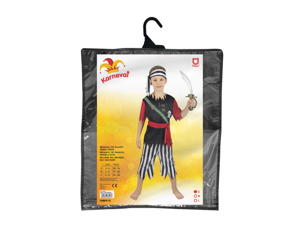 Karnevalový kostým pro opravdického piráta! Kostým ve velikosti S je určen pro chlapce ve věkovém rozmezí 4-6 let. Pozor, balení obsahuje pásek, horní díl, kalhoty a šátek!
