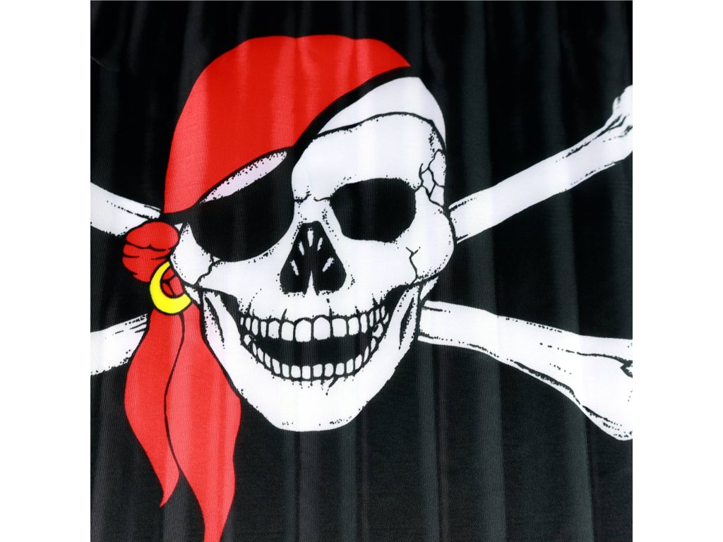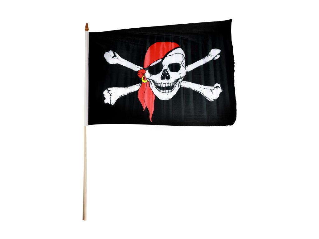 Parádní vlajka s děsivým, pirátským motivem pro skutečné piráty! Vlajka má rozměry 47 x 30 cm a je připevněna k dřevěné hůlce dlouhé 62 cm. Tento parádní kousek je senzačním doplňkem či dekorací každého karnevalového večírku!