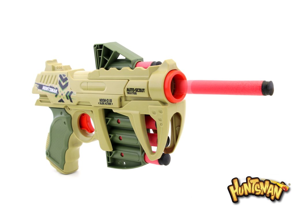 Pistole na pěnové náboje Huntsman X6. Sviňák Ramiréz uprchl z vězení a ty musíš za ním do kanálu, kam se velká zbraň nehodí? Vyzbroj se průzkumnickou X8. Velikost: 21 cm