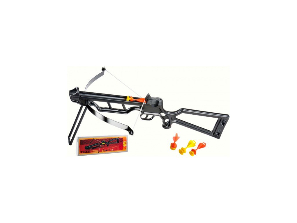 Dětská kuše na přilnavé šipky, kompozit, silonový vlasec, 3 šipky součástí balení. Vhodné pro děti od 5 let. UPOZORNĚNÍ! Poškozený přepravní obal (krabice, polystyren či plastová folie).Jedná se o nový, plně funkční výrobek, na který se vztahuje standardní, minimálně dvouletá, záruka.
