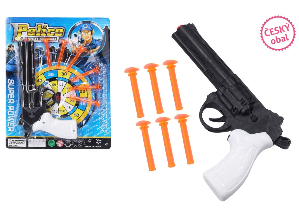 Pistole na přísavky pro malé bojovníky nebo pistolníky. Dětem se při hře s pistolkou a náboji nemůže nic stát, protože náboje jsou opatřeny přísavkami. Děti mohou střílet do terče, nebo i na sklo. Pistol je vyrobena z vysoce kvalitního a zdravotně nezávadného plastu, který je odolný vůči mechanickému poškození.