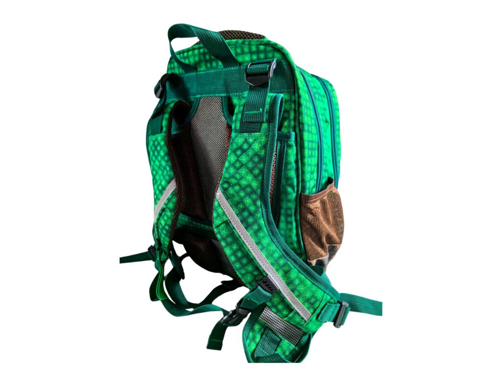 Školní batoh je vhodný od 3. třídy ZŠ, pro děti od výšky 130 cm. Batoh je vyroben z voděodolného polyesterového materiálu a silikonu, což umožňuje velice snadnou údržbu. Stačí jen otřít vlhkým hadříkem nebo houbičkou. Batoh má tři samostatně uzavíratelná prostorná oddělení. Kapsa nejblíže u zad je rozměrově největší a vejdou se do ní sešity, či jiné předměty o velikosti A4. Dvě velká oddělení jsou vhodná na knihy, sešity a jiné dokumenty menšího formátu. Po obou stranách batohu jsou síťovinové kapsy, do kterých lze umístit láhev. Pro komfortní užívání má batoh ergonomicky tvarovaná polstrovaná záda s ventilací a posuvný zádový systém umožňující nastavení optimální polohu popruhů vzhledem k výšce dítěte. Popruhy jsou široké a polstrované, aby se nezařezávaly a v přední části mají délkově nastavitelnou hrudní přezku, aby dětem nepadaly z ramen. Pro pohodlné přenášení v ruce je batoh vybaven polstrovaným úchytem, který může také sloužit jako poutko k zavěšení. Na přední straně batohu je umístěn unikátní silikonový PIXIE CREW creative panel TM zelené barvy. Ke každému batohu zdarma přikládáme balíček přibližně 50 ks malých PIXIES (pixelů). Rozměry balení: 40 x 42 x 33 cm. Rozměry produktu: 44 x 34 x 14 cm. Věk: 8+