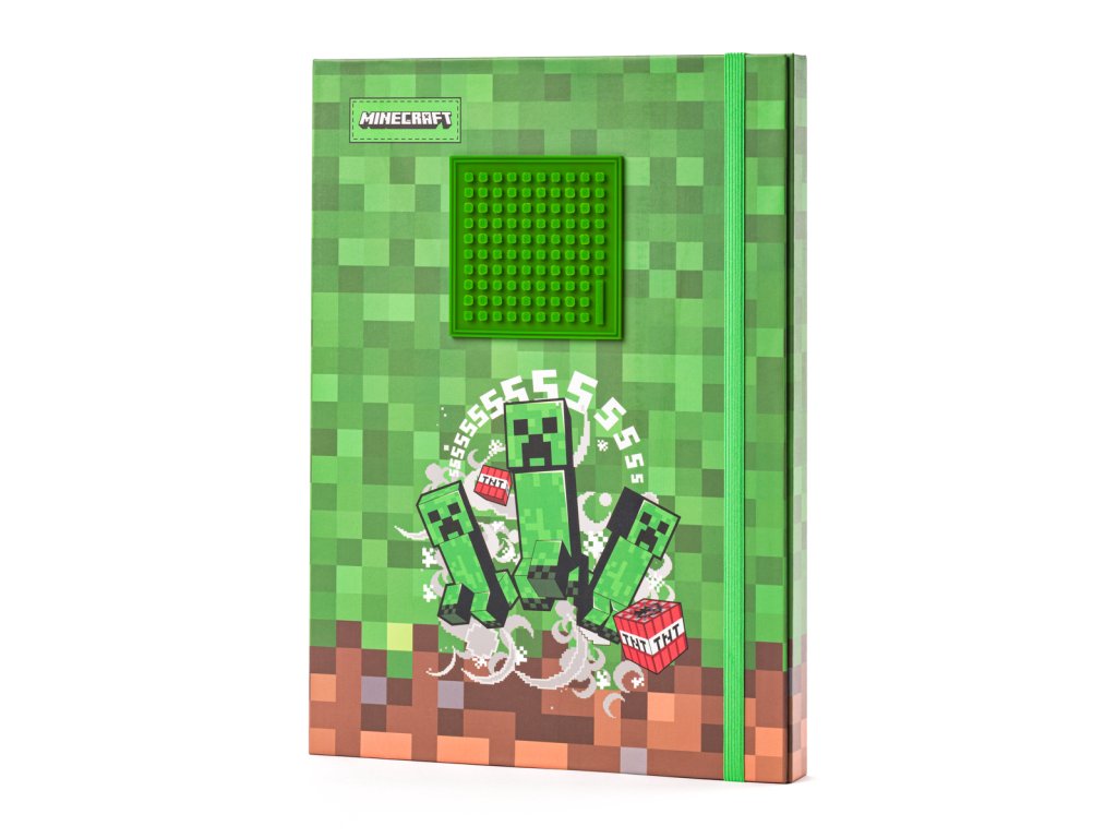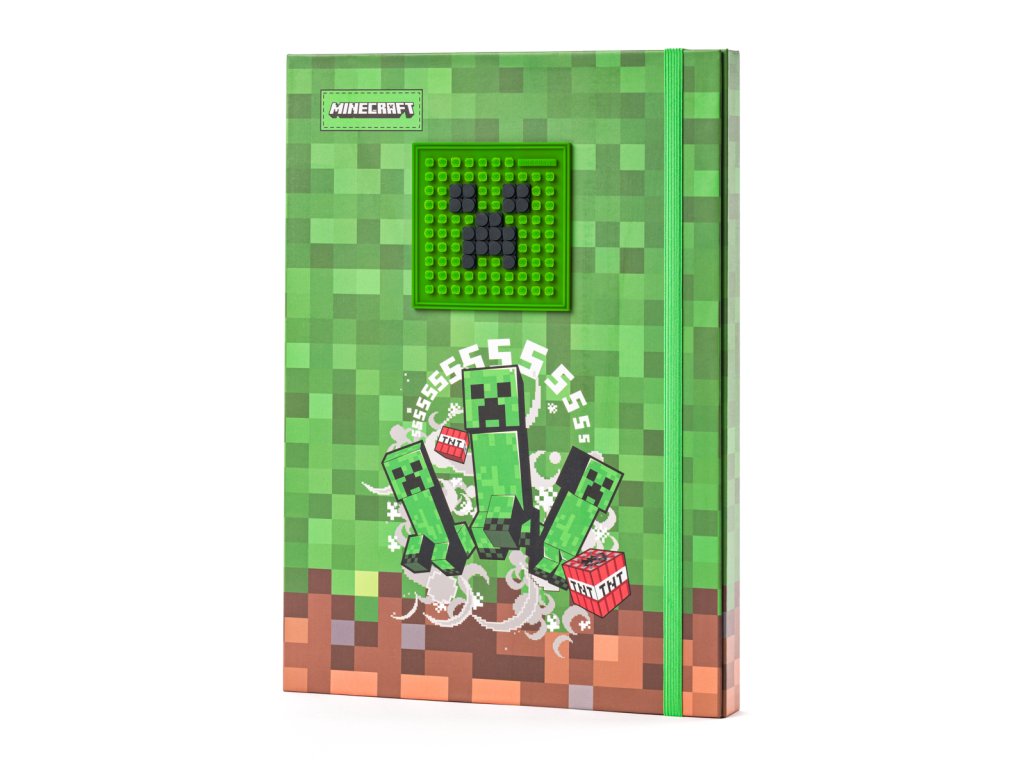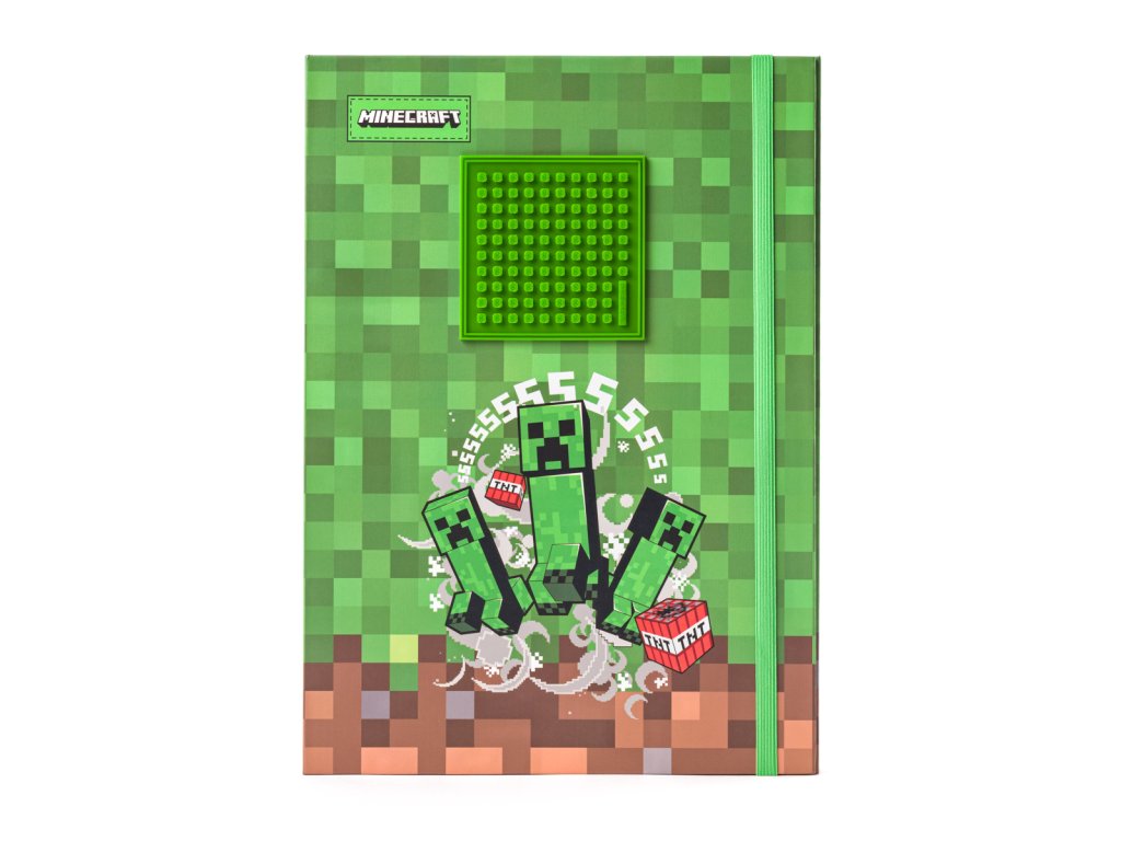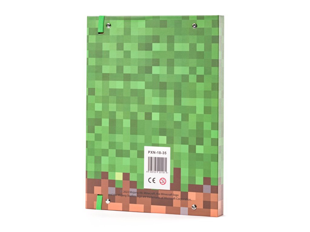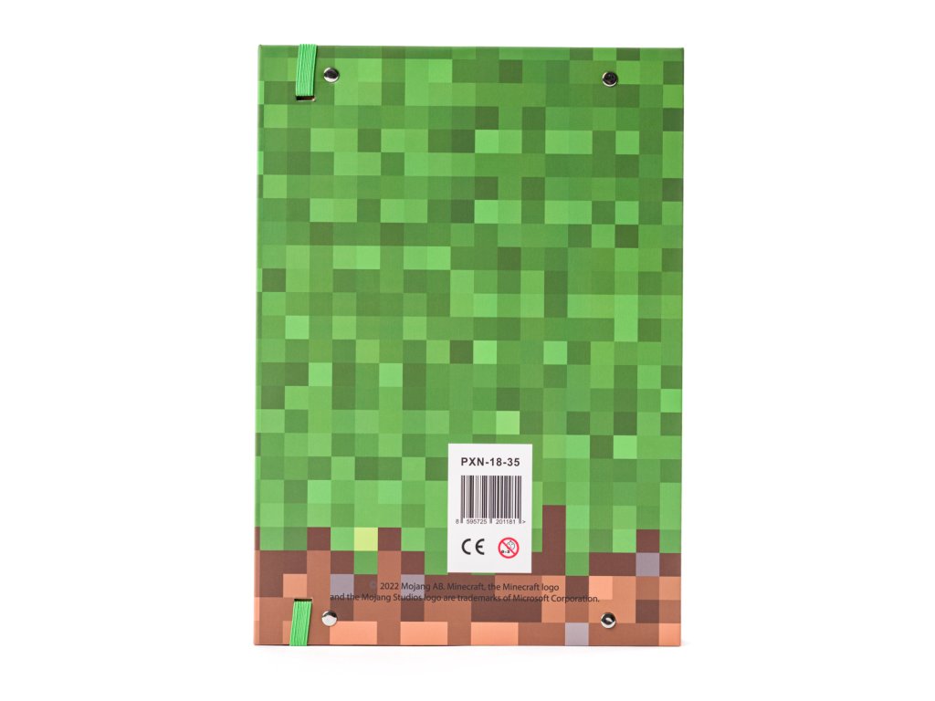 Zeleno-hnědé PIXIE CREW & MINECRAFT kartonové desky velikosti A4 jsou určeny především na sešity, učebnice anebo volné papíry. Desky jsou vyrobeny z tvrdého kartonu, jsou opatřeny jednou zelenou gumičkou, která zabrání samovolnému otevření, na vrchní a spodní části mají klopu, takže z nich nikdy nic nevypadne. Potisk je lesklý. Desky se dají otevřít a zavřít. Do desek můžete vložit až 7 sešitů velikosti A4. Na přední straně desek je obrázek Creepera ze světoznámé počítačové hry MINECRAFT, nad ním je pevně nalepený světle zelený PIXIE CREW panel, na který si můžete vyskládat pomocí Pixies (pixelů) úplně cokoli a kdykoli to můžete změnit. Celé desky jsou vně zelenohnědé. Na vrchní straně zelené ve spodní straně jsou hnědé. Uvnitř jsou kartonové desky bílé. Zelený panel je veliký 10x10 pixelů a celkový počet použitelných pixelů na panelu je 97. Součástí je balíček se 30 malými černými pixely pro sestavení obličeje CREEPERa. Rozměr: 25x33x5. Věk 6+