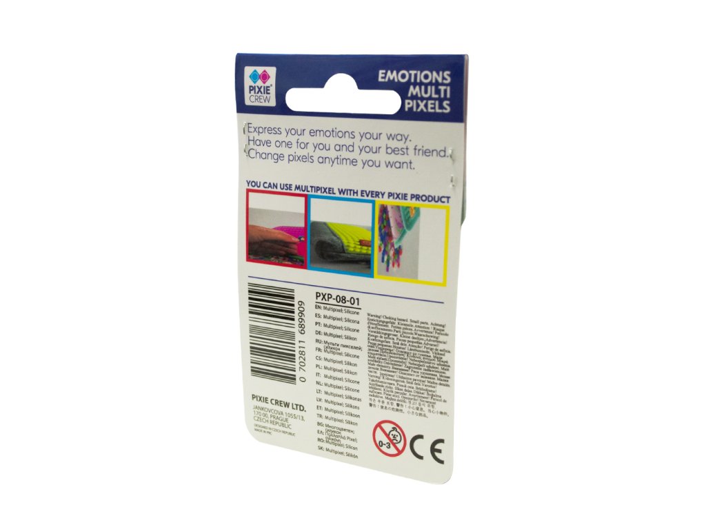 Balení čtyř kusů silikonových multipixelů (pixel o vel. 2x2 body) s obrázky z kolekce ËMOJI. Patentovaný tvar multipixelu zaručuje stabilní uchycení na silikonový panel se speciálně tvarovanými body. Multipixely je možné použít na všechny produkty Pixie Crew se silikonovým panelem vhodným pro malé PIXIES (pixely) a je možné je kombinovat s malými barevnými PIXIES nebo malými PIXIES s písmeny. Ideální pro rychlé a efektivní personifikace batohů, penálů a dalších doplňků. Sada je navržena podle konkrétního tématu, což umožňuje dětem a dospělým vyjádřit své zájmy a preference skrze jejich osobní věci. Stejně jako všechny PIXIE CREW produkty, i tyto multipixely jsou vyrobeny z kvalitního silikonu pro dlouhodobou odolnost a snadné použití. Rozměr balení: 7x11x0,5 cm. Věk 6+