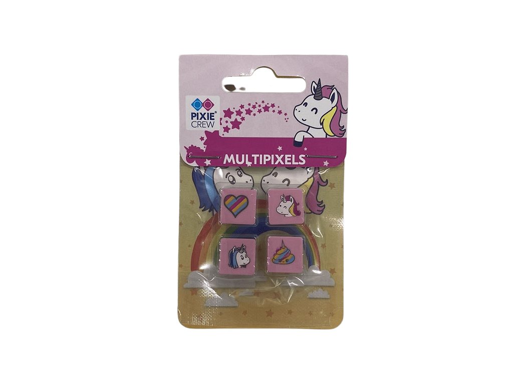 Balení čtyř silikonových multipixelů (pixel o vel. 2x2 body) s obrázky jednorožce. Patentovaný tvar multipixelu zaručuje stabilní uchycení na silikonový panel se speciálně tvarovanými body. Multipixely je možné použít na všechny produkty Pixie Crew se silikonovým panelem vhodným pro malé PIXIES (pixely) a je možné je kombinovat s malými barevnými PIXIES nebo malými PIXIES s písmeny. Ideální pro rychlé a efektivní personifikace batohů, penálů a dalších doplňků. Sada je navržena podle konkrétního tématu, což umožňuje dětem a dospělým vyjádřit své zájmy a preference skrze jejich osobní věci. Stejně jako všechny PIXIE CREW produkty, i tyto multipixely jsou vyrobeny z kvalitního silikonu pro dlouhodobou odolnost a snadné použití. Rozměr balení: 7x11x0,5 cm. Věk 6+
