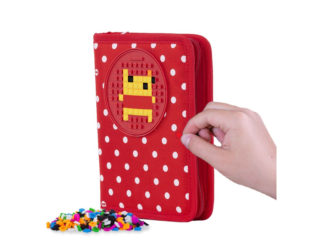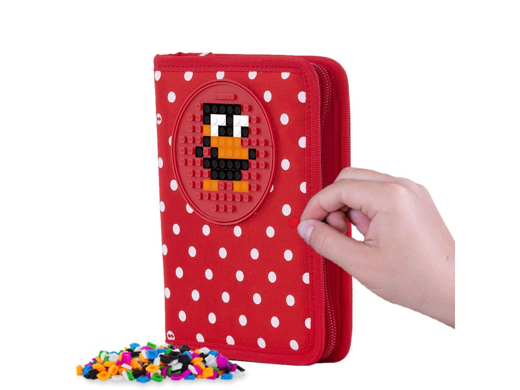 PIXIE CREW školní penál červená látka s bílými tečkami