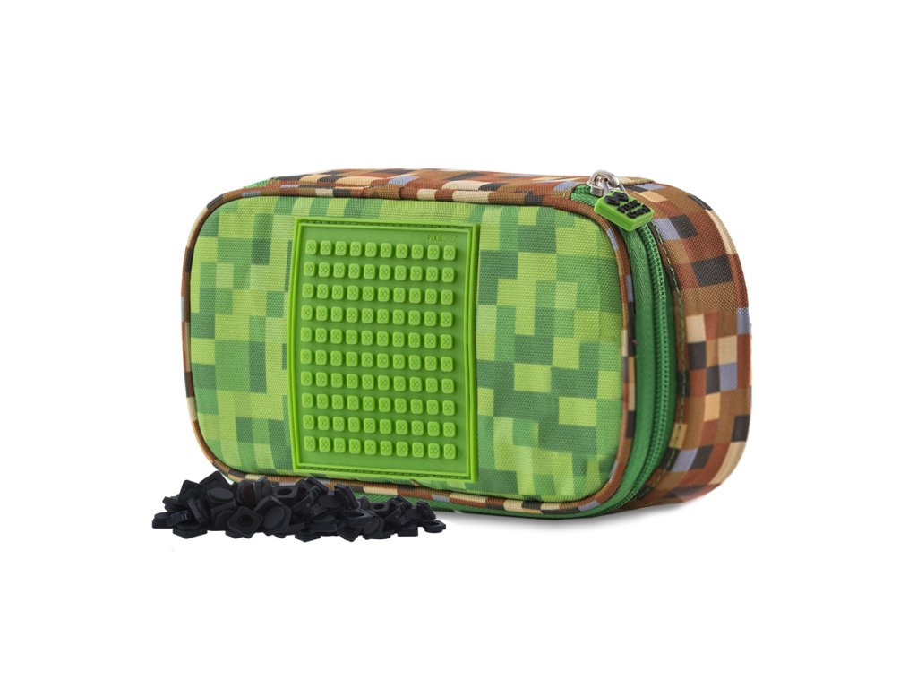 PIXIE CREW studentský penál zeleno-hnědý malý panel
