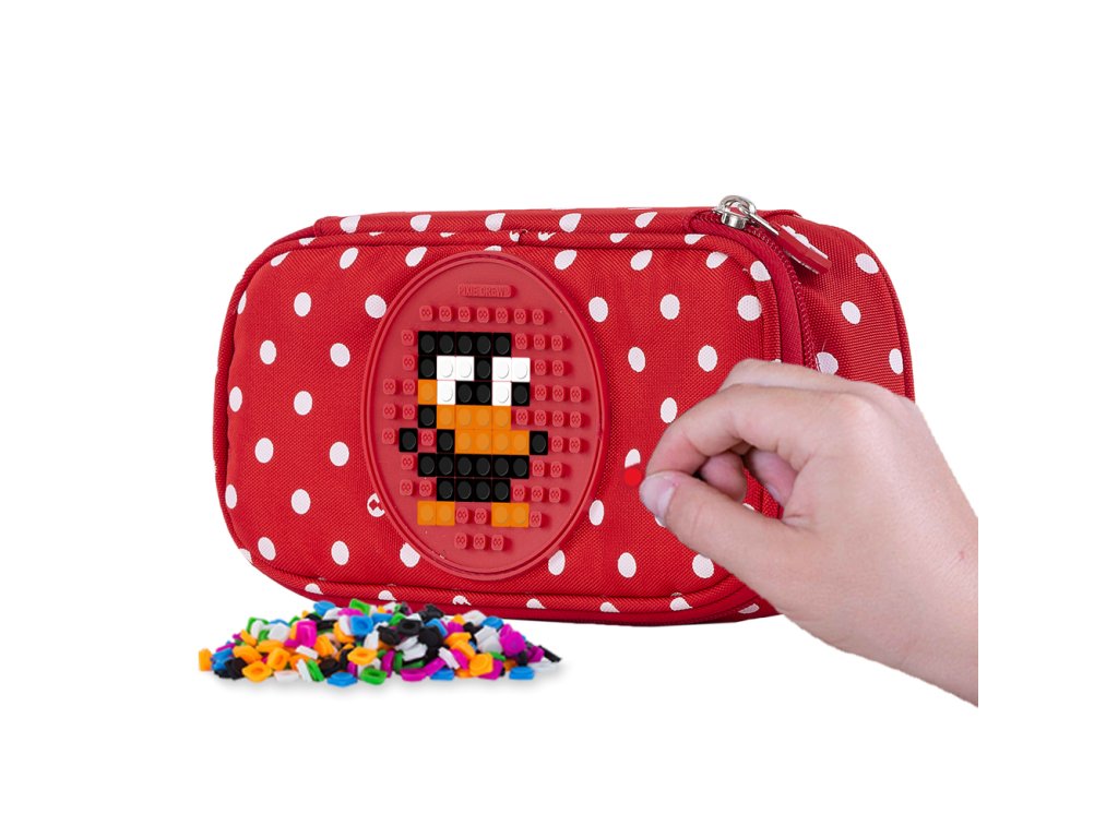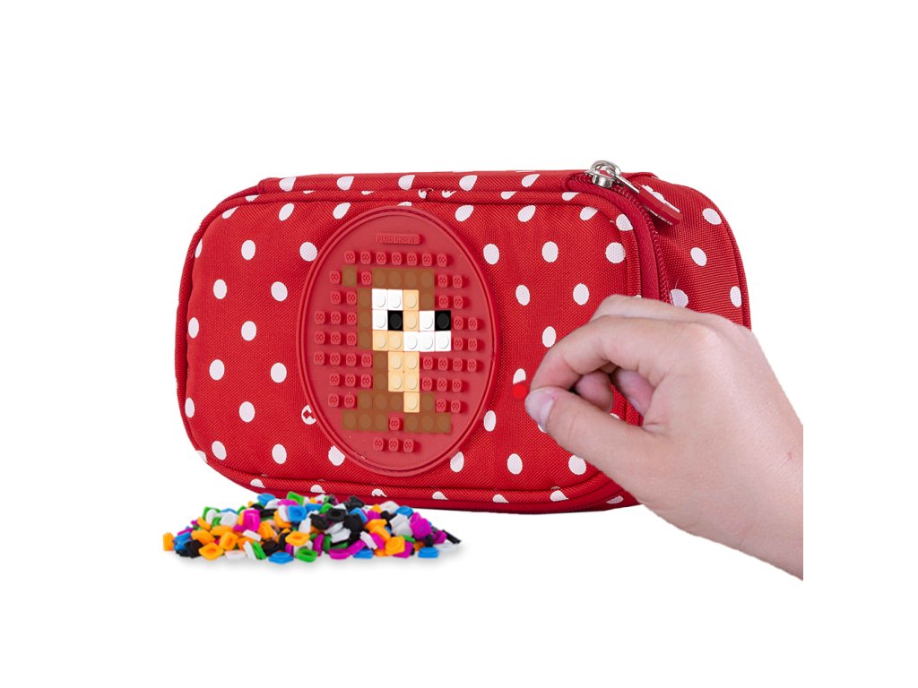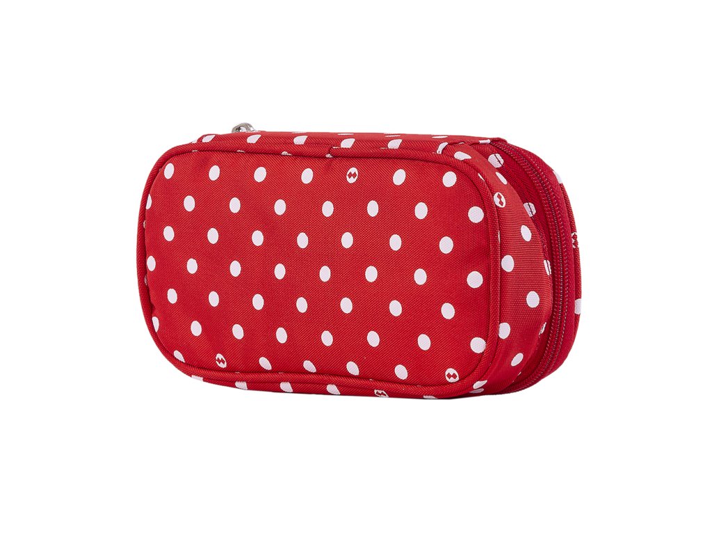 PIXIE CREW studentský penál červená látka s bílými puntíky