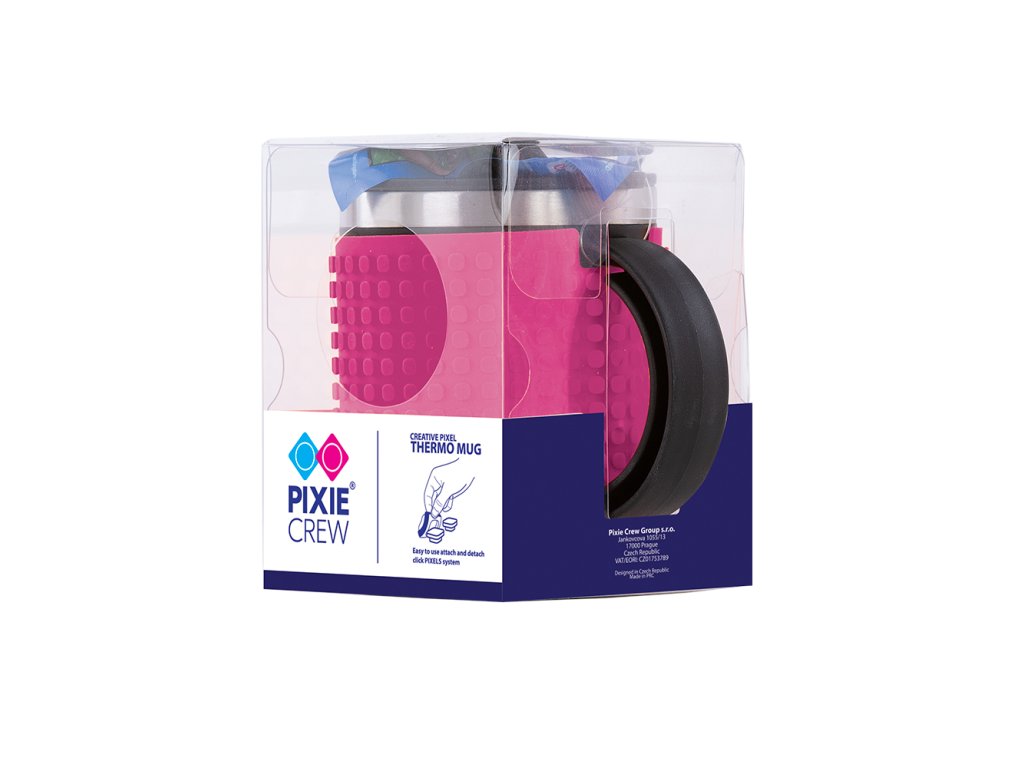 Exkluzivní termohrnek PIXIE CREW, který přináší dokonalé spojení funkčnosti a kreativity. S jádrem vyrobeným z nerezové oceli a kapacitou 400 ml, uchová váš nápoj teplý či osvěžující po dlouhé hodiny. Ergonomické ouško nejen zajišťuje bezpečné pití pro děti, ale také elegantní úchop pro dospělé. Fuchsiový silikonový panel PIXIE CREW creative panel TM s rozměry 38x9 bodů dodává hrnku nekonečné možnosti personalizace. S 334 pozicemi pro různé motivy, které můžete libovolně měnit díky PIXIES (pixelům), tento hrnek poskytuje nekonečnou kreativitu pro každý den. S každým hrnkem zdarma dodáváme balíček obsahující přibližně 100 malých PIXIES (pixelů) a mini galerii pro inspiraci. Inspirujte se také na naší stránce pixiecrewgallery, kde naleznete širokou škálu nápadů pro vaše designy. Perfektní společník pro každodenní použití, ať už jste v škole, v práci nebo na cestách. Bezstarostné mytí v myčce je samozřejmostí, a pro snadnější údržbu doporučujeme sundat PIXIES (pixely) nebo celý silikonový panel před umístěním do myčky. Rozměry: 9x9x9 cm. Věk 6+