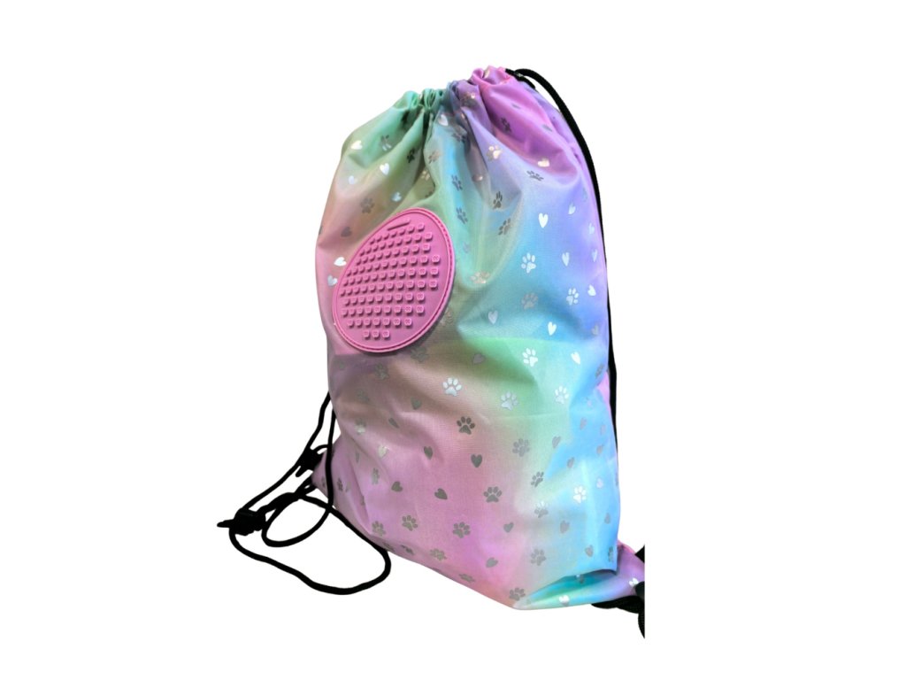 Jednoduchý vak na záda zvaný také Gymsack vyrobený ze 100 % polyesteru je velmi oblíbený u dětí, teenegerů i mladých lidí. Je ideální na přezůvky, tělocvik, věci do fitka, do práce nebo na kolo. Má dlouhou zatahovací šňůrku, proto se dá pohodlně nosit připevněný k aktovce, přes rameno nebo ještě lépe na zádech a stává se tak moderním doplňkem. Praktický je také i díky použitému materiálu, který je jednoduchý na údržbu a je lehce složitelný a skladný. Na přední straně je umístěn unikátní silikonový PIXIE CREW creative panel TM růžové barvy. Kruh je o průměru 9 cm a k dispozici máte 86 bodů pro nekonečné množství motivů na každý den díky PIXIES (pixelům), které můžete kdykoli sundat a vyměnit za jiné. Ke každému penálu zdarma přikládáme balíček přibližně 50 ks malých PIXIES (pixelů). Rozměry balení: 43 x 32 x 1 cm. Věk: 6+