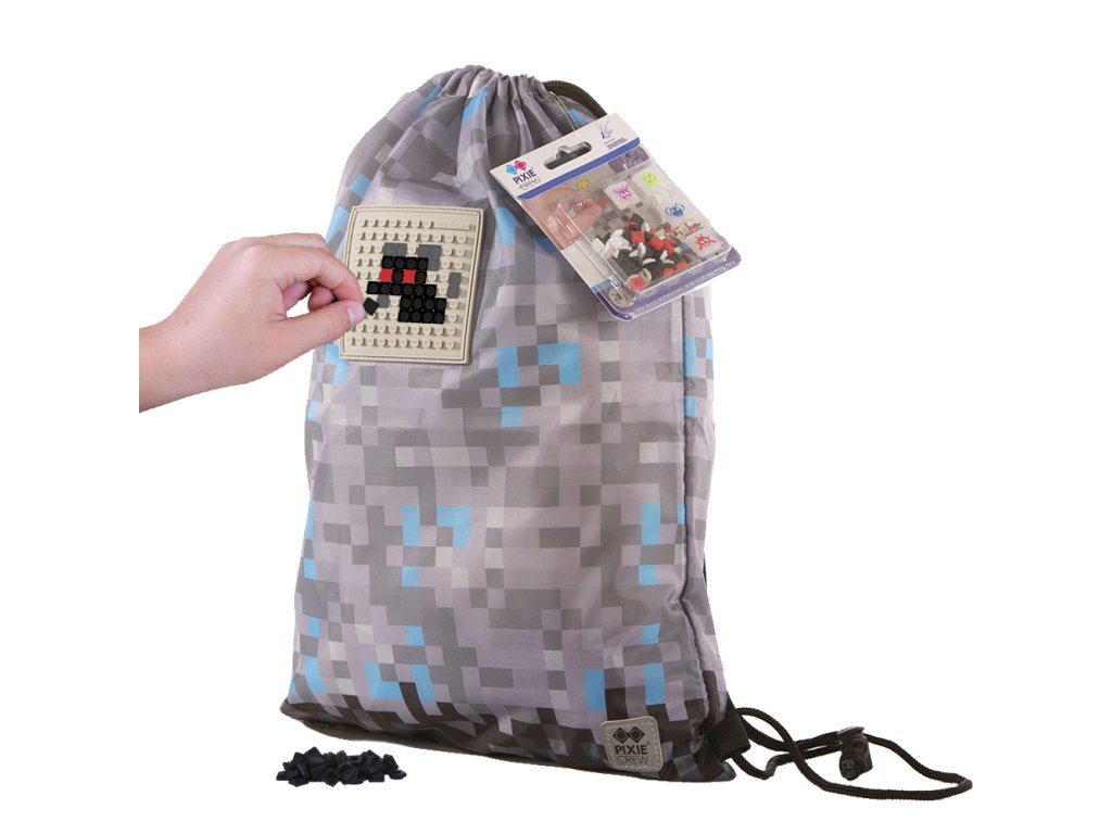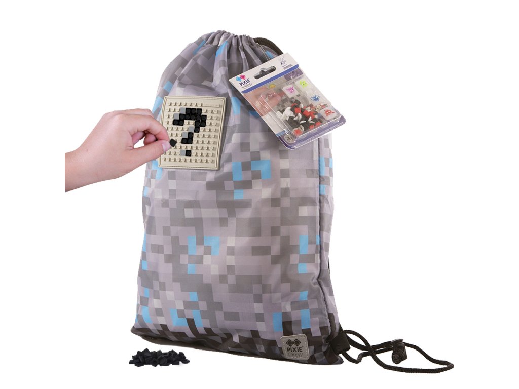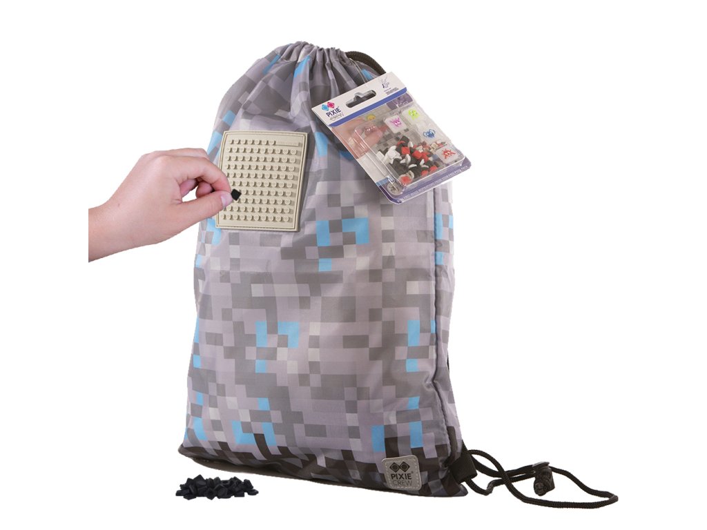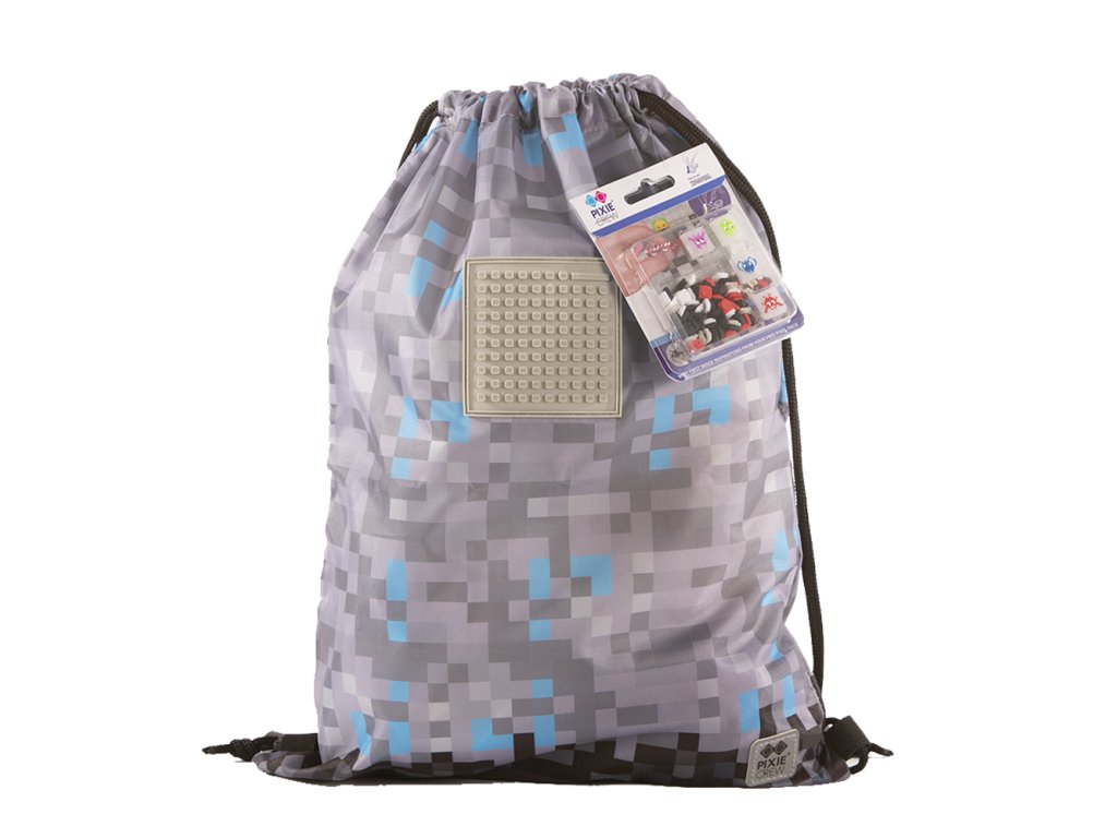 Praktický a univerzální šedo-modrý vak na záda od PIXIE CREW v designu Minecraft je ideálním doplňkem k aktovce nebo jako samostatný pomocník pro volnočasové aktivity. Jeho hlavní prostor uzavíratelný šňurkovými popruhy poskytuje dostatek místa pro uložení různých drobností, ať už jsou to sportovní potřeby, svačina nebo školní pomůcky. Vnitřní kapsa na drobnosti je praktická pro uchování menších předmětů jako jsou klíče nebo peníze. Praktický je také i díky použitému materiálu, který je jednoduchý na údržbu a je lehce složitelný a skladný. Sáček je lehký a snadno se nosí, a zároveň nabízí možnost personalizace pomocí pixelů, což umožňuje dětem vyjádřit svůj osobní styl. Na přední straně je umístěn unikátní silikonový PIXIE CREW creative panel TM šedé barvy. Čtverec je o velikosti 10 x 10 bodů a k dispozici máte 97 pozic pro nekonečné množství motivů na každý den díky PIXIES (pixelům), které můžete kdykoli sundat a vyměnit za jiné. Ke každému vaku zdarma přikládáme balíček přibližně 55 ks malých PIXIES (pixelů), 10 malých PIXIES (pixelů) s písmeny, 4 multipixely (pixel o vel. 2x2 body) s brázky a mini galerii pro inspiraci. Inspiraci můžete také čerpat na stránkách pixiecrewgallery. Rozměr: 32x41x1. Věk 6+