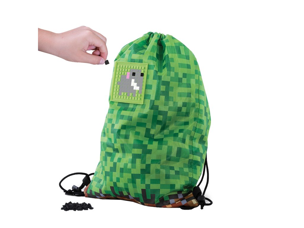 Praktický a univerzální vak v designu Minecraft od PIXIE CREW je ideálním doplňkem k aktovce nebo jako samostatný pomocník pro volnočasové aktivity. Jeho hlavní prostor uzavíratelný šňurkovými popruhy poskytuje dostatek místa pro uložení různých drobností, ať už jsou to sportovní potřeby, svačina nebo školní pomůcky. Vnitřní kapsa na drobnosti je praktická pro uchování menších předmětů jako jsou klíče nebo peníze. Praktický je také i díky použitému materiálu, který je jednoduchý na údržbu a je lehce složitelný a skladný. Sáček je lehký a snadno se nosí, a zároveň nabízí možnost personalizace pomocí pixelů, což umožňuje dětem vyjádřit svůj osobní styl. Na přední straně je umístěn unikátní silikonový PIXIE CREW creative panel TM zelené barvy. Čtverec je o velikosti 10 x 10 bodů a k dispozici máte 97 pozic pro nekonečné množství motivů na každý den díky PIXIES (pixelům), které můžete kdykoli sundat a vyměnit za jiné. Ke každému vaku přikládáme balíček s 50 malými černými pixely pro sestavení obličeje CREEPERa. Rozměr: 32x43x1. Věk 6+