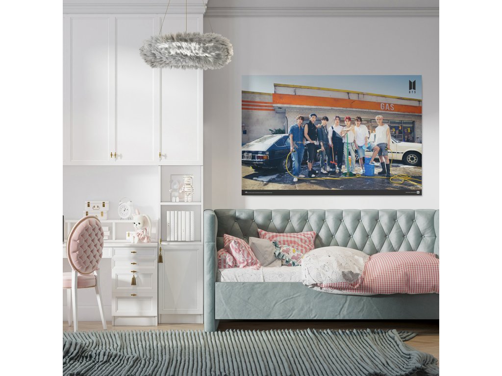 Oficiální plakát z katalogu zboží s licencí hudební skupiny BTS.