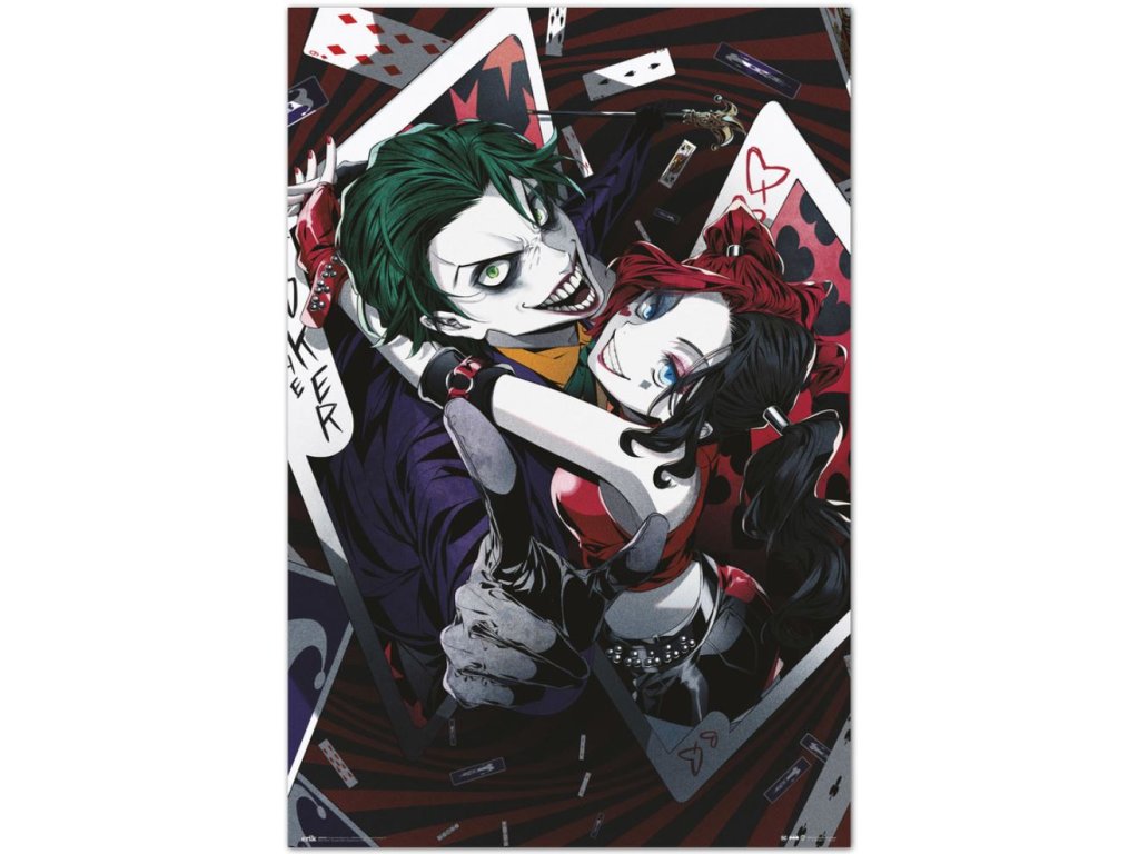 Plakát s logem a grafikou antihrdinů populárních komiksů: Harley Quinnové a Jokera. Plakát je vhodný nejen jako výzdoba na Halloween, ale například i do kanceláře či jiného bytového prostoru.