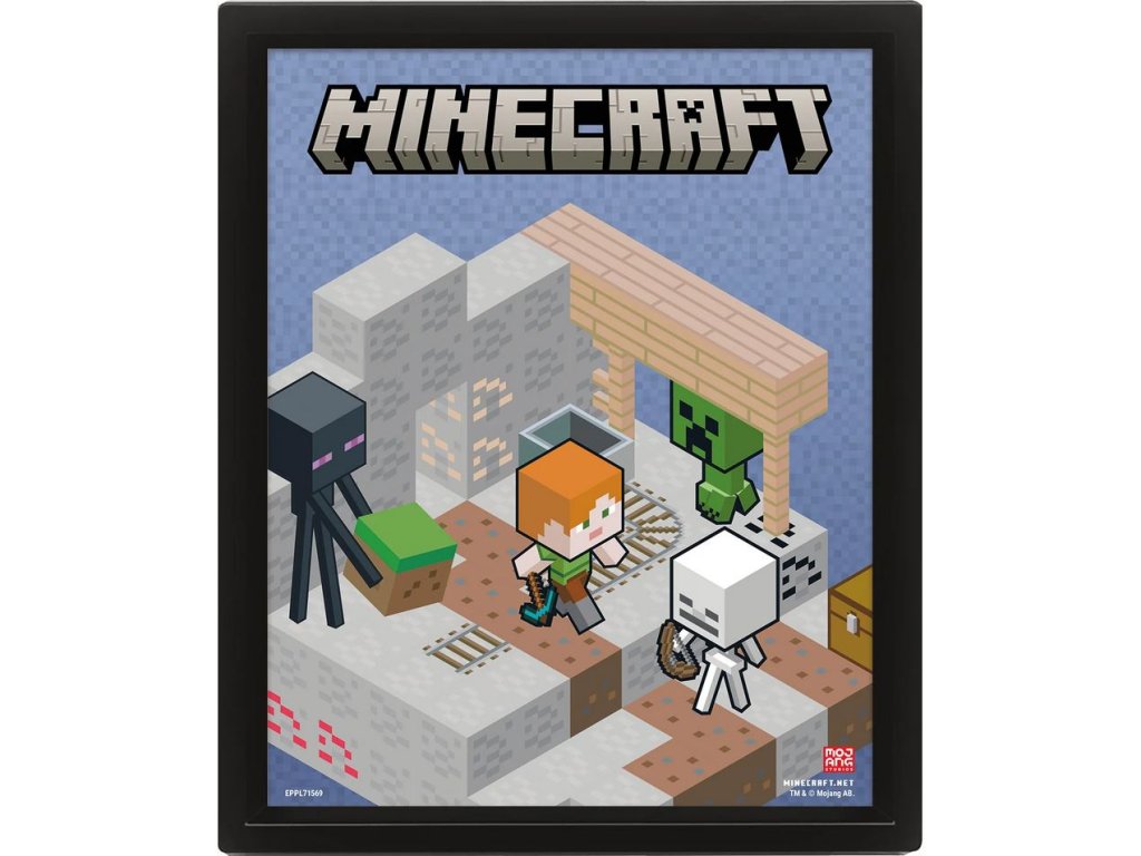 3D proměňovací obrázek v rámu s grafikou terénu ze hry Minecraft. Obrázek se mění pokaždé, co změníte jeho naklonění. Obrázek je vhodným doplňkem pokoje každého menšího i většího fanouška hry Minecraft.