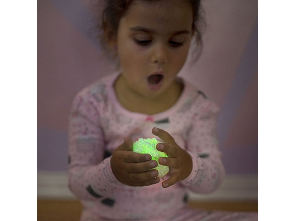 Rozzářete svoje výtvory! Modelína, která nešpiní, vhodná od 3 let do 10 let. Zhasněte vypínač a sledujte, jak vaše mistrovská díla září ve tmě!