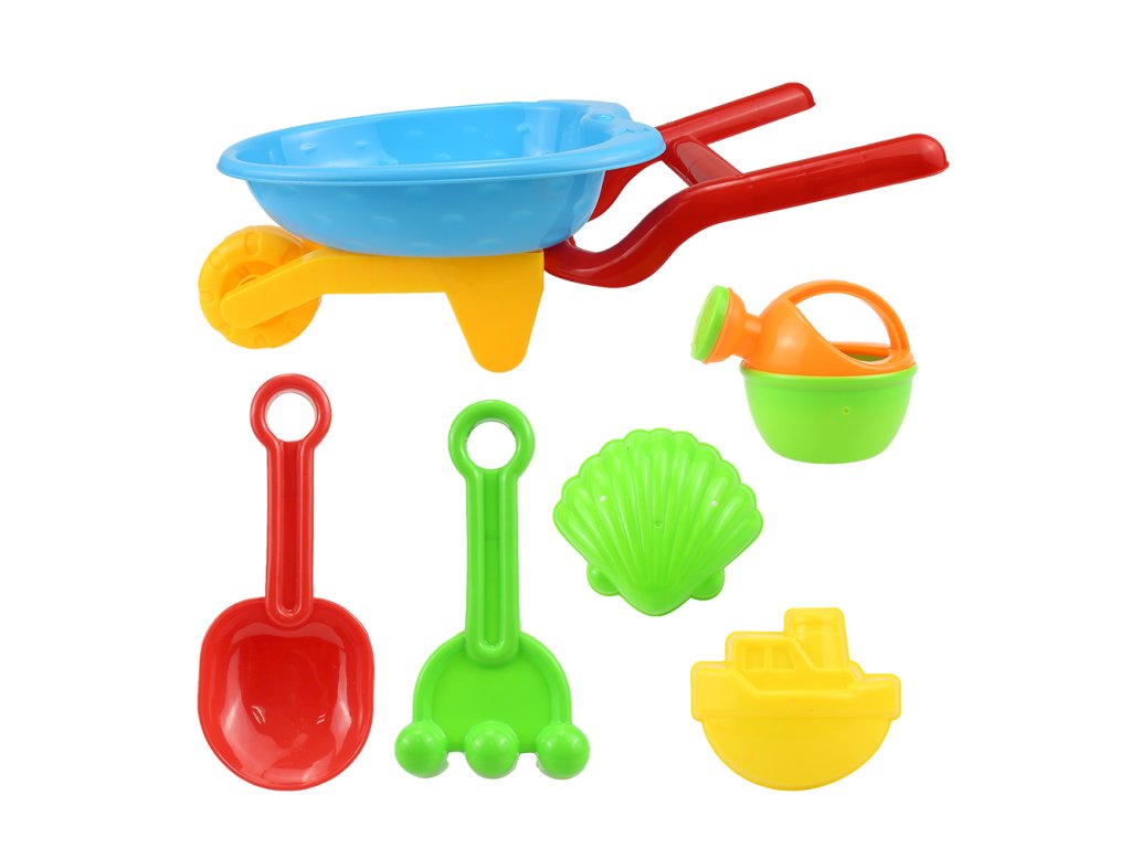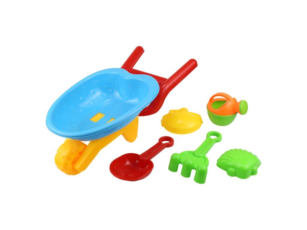 Dětská sada je určena pro hraní na písku. Díky pestrobarevné sadě si děti užijí zábavu na pláži nebo na pískovišti. Obsah: 1 x kolečko, 2 x bábovka, 1 x hrabičky, 1x lopatka a 1 x konvička. Materiál: plast. Rozměry kolečka: 15 x 20 x 43 cm. Rozměry balení: 52 x 20 x 14 cm. Věk: 3+