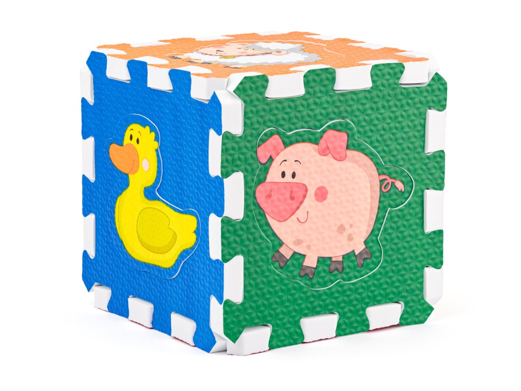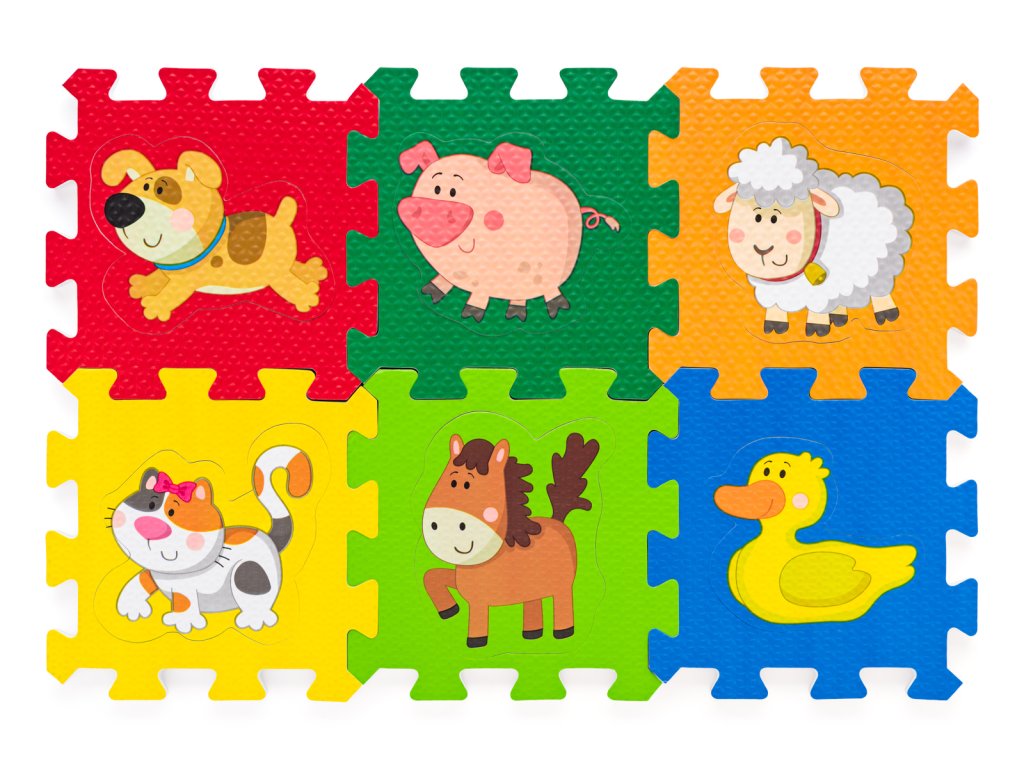 Pěnové puzzle s vyjímatelným středem seznámí děti s domácími zvířátky. Jejich úkolem je vložit zvířátka do správných otvorů. Puzzle jsou netoxické, bezpečné a omyvatelné. Tato hračka rozvíjí jemnou motoriku, logiku a koordinaci oko-ruka. Počet dílů: 12. | Věk:3+ | Rozměr dílu: 15x15 cm