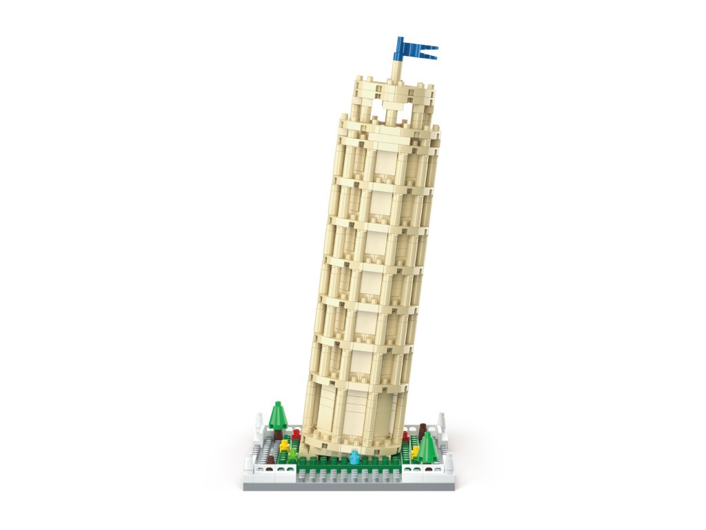 KOCO Stavebnice Šikmá věž v Pise 548 dílků. Rozměry 8x8x17,5 cm. Součástí 2 figurky. Obrázkový návod na sestavení součástí.