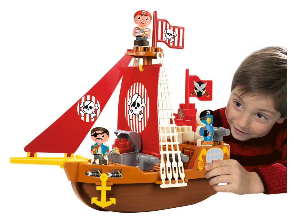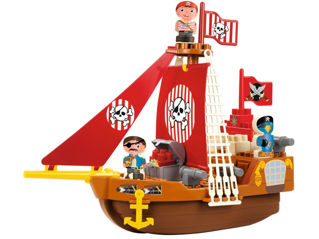 Pirátská loď s příslušenstvím z oblíbené řady Abrick pro nejmenší. 2 figurky pirátů a papouška součástí. Rozměry: 43 x 19 x 35 cm.