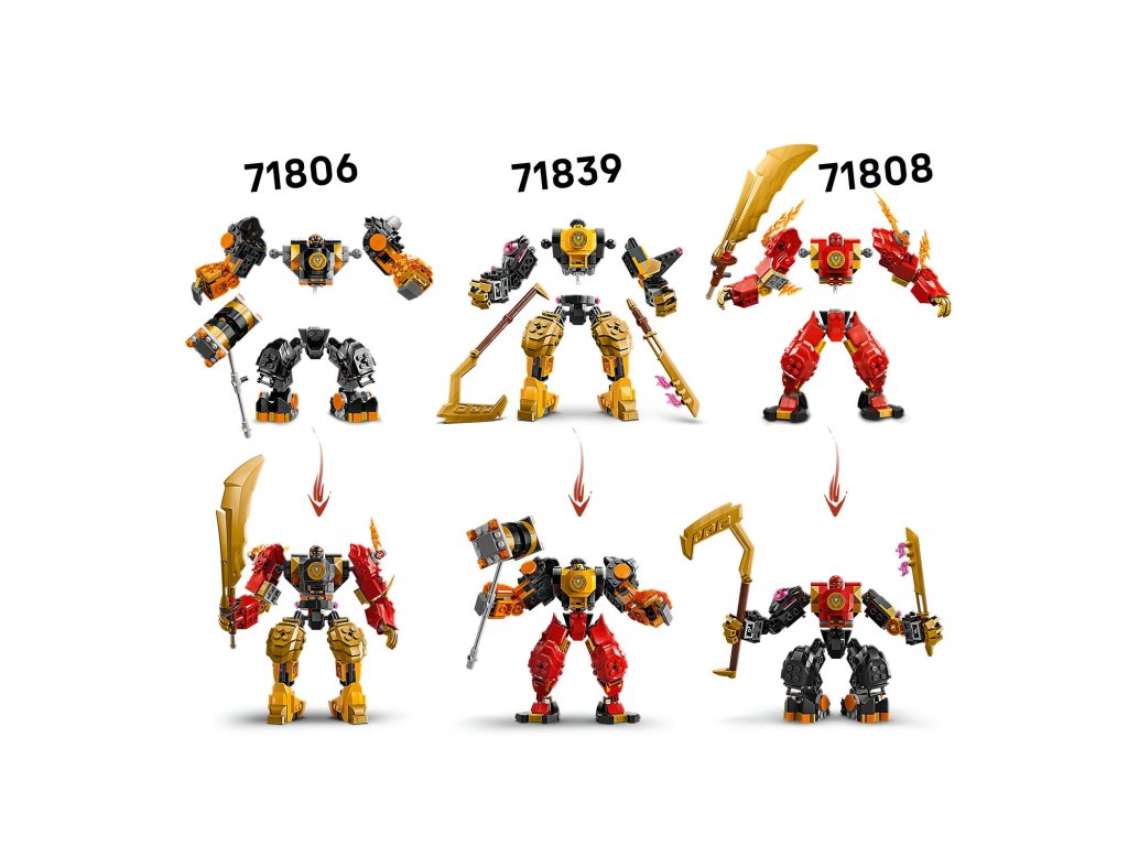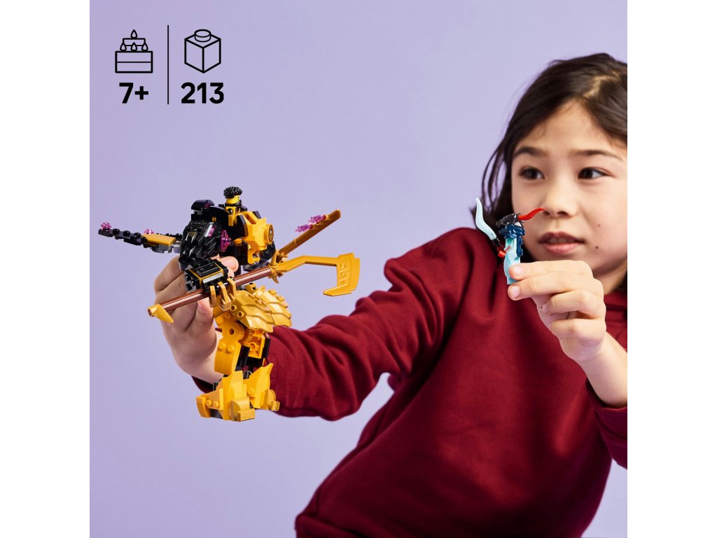 Milovníci nindžů od 7 let si se stavebnicí LEGO® NINJAGO (71839) Arin a bojový robot Spinjitzu můžou přehrát scény ze 3. řady seriálu NINJAGO® Dračí povstání. Tato stavebnice pro děti obsahuje robota NINJAGO s pohyblivými pažemi a nohama, které lze naklánět a otáčet do různých poloh, otočný trup, otevírací hruď, do které lze umístit minifigurku, a 2 velké meče. Děti si také můžou postavit robota podle vlastní představivosti výměnou částí těla z Arinova bojového robota Spinjitzu za díly z přizpůsobitelných robotů z řady NINJAGO 2024 (prodávají se samostatně): Coleův živelný zemský robot (71806), Sorin živelný technický robot (71807), Kaiův živelný ohnivý robot (71808) a Lloydův robot živelné síly (71817). Tato nindžovská stavebnice obsahuje 2 minifigurky: Arina s křišťálovou katanou a Přízračného dračího bojovníka s vlastním mečem, se kterým si děti můžou přehrávat napínavé bitvy dobra proti zlu. Součástí je také model Riyu jako mláděte. Stavebnice obsahuje 213 dílků.