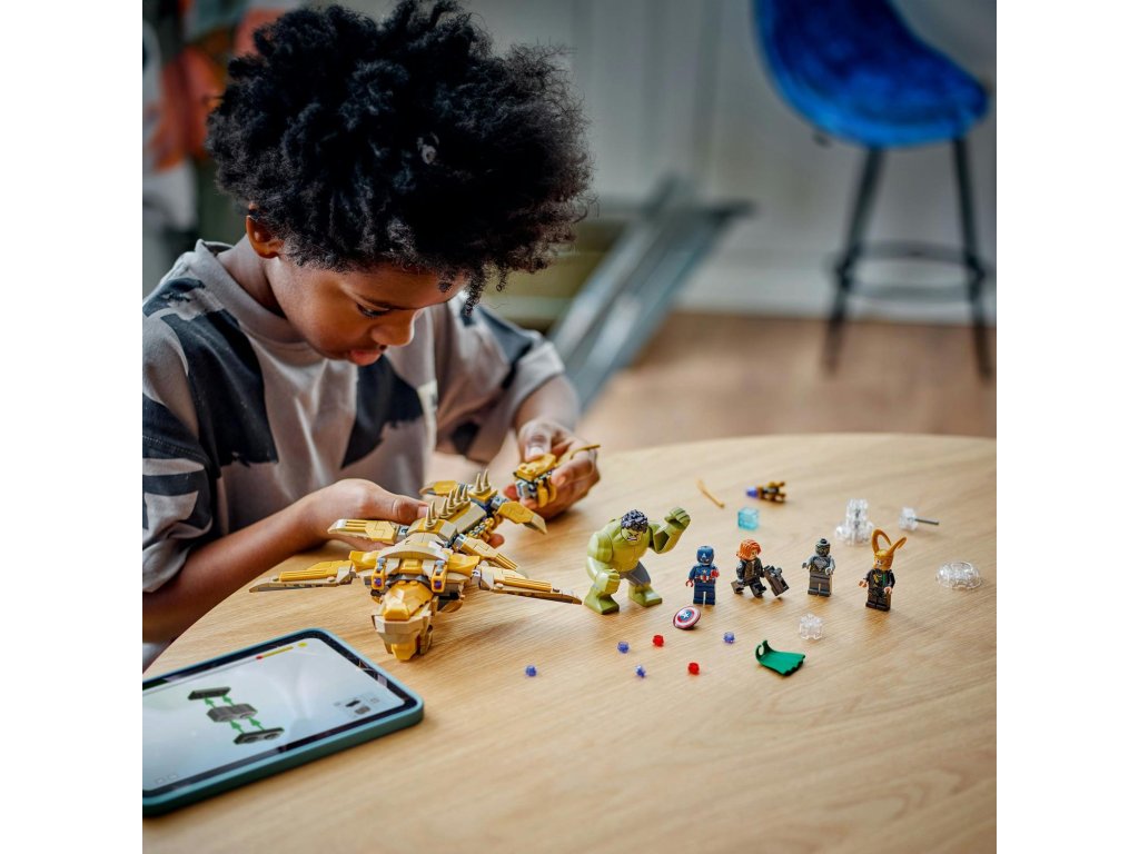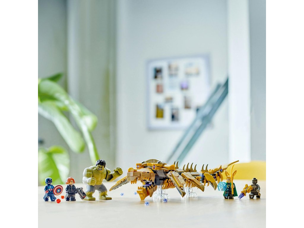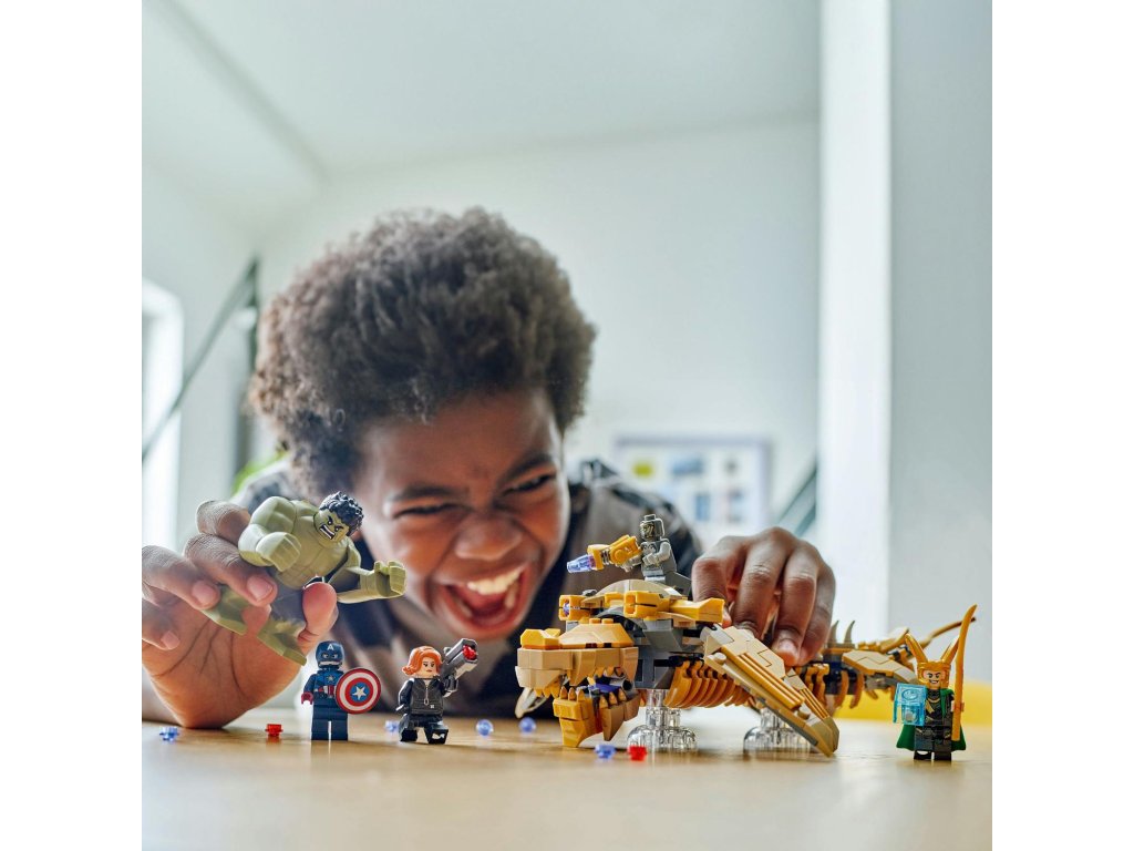Sběratelská superhrdinská stavebnice LEGO® Marvel (76290) Avengers vs. Leviathan přehrává závěrečnou bojovou scénu z filmu Marvel: Avengers od Marvel Studios. Tento sestavitelný model LEGO Marvel pro děti od 7 let obsahuje kultovní postavy a spoustu autentických prvků a funkcí. Sada obsahuje 4 minifigurky – Kapitána Ameriku se štítem, Black Widow s vystřelovačem, Lokiho s pláštěm a helmou a válečníka Chitauriho s laserovou pistolí – k tomu navíc velkou figurku Hulka. Sestavitelný Leviathan má 6 pohyblivých ploutví, otevírací tlamu, hlavu, kterou lze mírně otočit do strany, a 2 vystřelovače. Leviathan je dodáván s průhlednými stojany, které umožňují minifigurkám během hraní „létat“. Vystavení je díky nim ještě působivější. Intuitivní aplikace LEGO Builder dětem umožní přibližovat si modely, otáčet je ve 3D, ukládat stavebnice a sledovat postup při stavění.