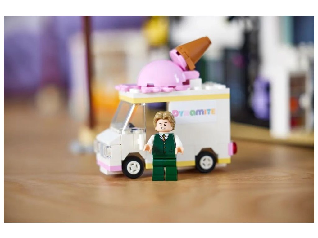 Zachyťte radostnou energii popových ikon 21. století se stavebnicí videoklipu BTS Dynamite od LEGO® Ideas (21339) – RM, Jin, SUGA, j-hope, Jimin, V and Jung Kook. Postavte si LEGO verze pestrobarevných scén z videoklipu k jejich multiplatinovému singlu Dynamite – diskotéku, obchod s hudebními deskami, obchod s donuty, zmrzlinářský vůz a další. Postavte všechny LEGO minifigurky BTS na různá místa nebo na odnímatelné pódium a otáčením kola je roztančete.