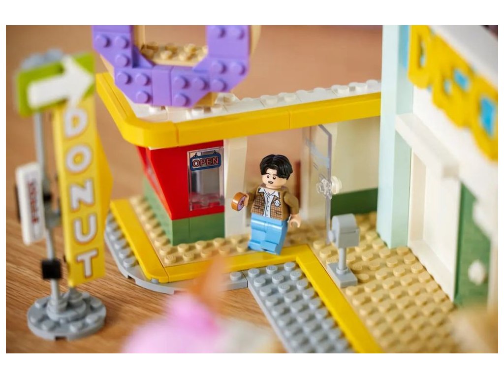 Tento model na stavění a hraní je úžasný dárek pro fanoušky BTS a je plný autentických detailů, jako jsou alba BTS v obchodě s hudebními deskami, sestavitelné palmy a basketbalový koš před malovanou zdí. Návod k sestavení tohoto zábavného modelu najdete v krabici a v aplikaci LEGO Builder, která vás provede každým krokem.