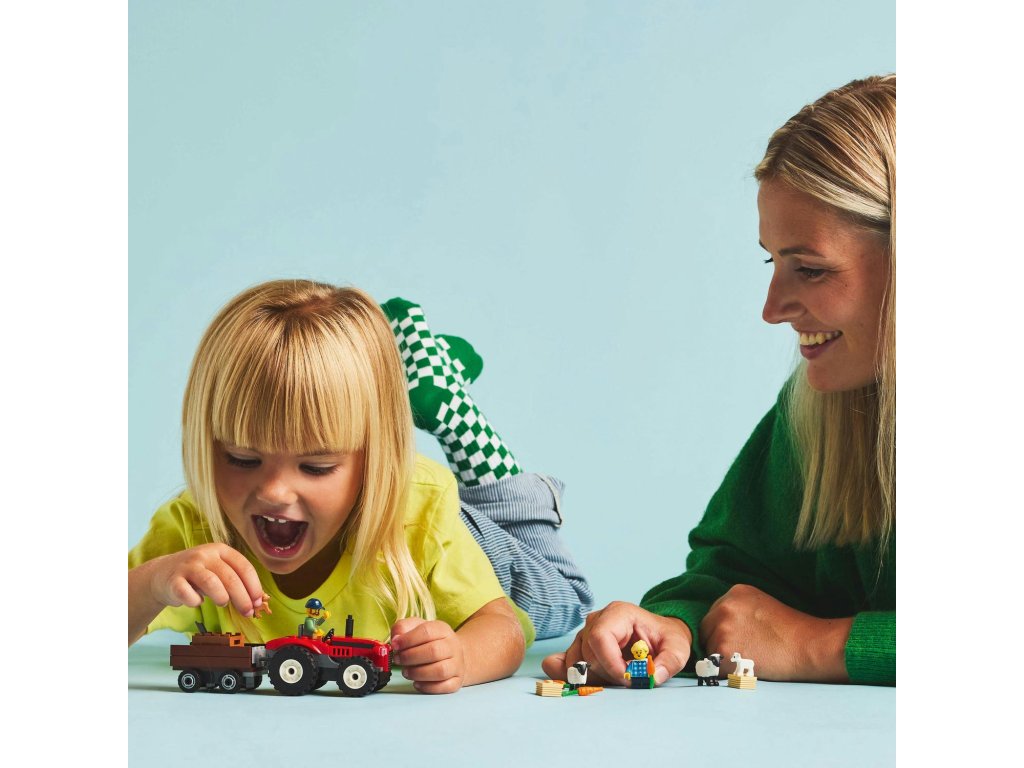 Vneste do pokojíčku své ratolesti kouzlo venkova se stavebnicí LEGO® City (60461) Červený traktor s přívěsem a ovcemi. Tato stavebnice je ideální pro děti od 4 let a součástí je červený traktor s odpojitelným přívěsem, košík s mrkví a 2 balíky sena. Stačí přidat minifigurky farmáře a jeho dcerky a figurky 2 ovcí, jehňátka a štěňátka a můžete se pustit do napínavého hraní na postavy a vymýšlení příběhů. Součástí této snadno sestavitelné stavebnice traktoru z kostek LEGO je začátečnická kostka LEGO, obrázkové pokyny a 3D návod v doprovodné aplikaci LEGO Builder, která obsahuje nástroje přibližování a otáčení, aby si děti mohly během stavění prohlížet modely ze všech úhlů. Stavebnice LEGO City Skvělá vozidla přinášejí realistická vozidla a stroje a zábavné postavy, které inspirují k nápaditému hraní bez hranic. Děti můžou tuto stavebnici z farmy kombinovat s dalšími sadami z řady LEGO City (prodávají se samostatně) a rozšířit si tak svět herních možností.