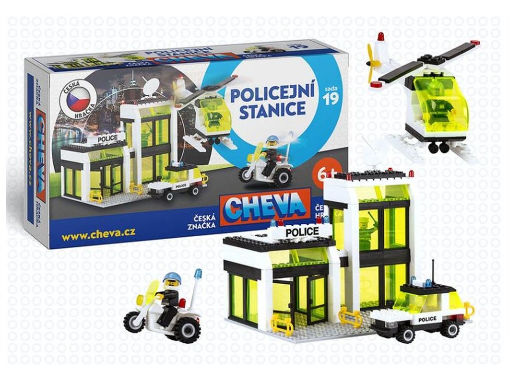 Chceš mít doma opravdovou policejní stanici? Tak neváhej a dej se do skládání! Sestav si také policejní auto, motorku nebo vrtulník. Součástí balení je podrobný návod na sestavení vyobrazeného modelu. Ze stavebnice je možné postavit nejen model vyobrazený na obalu, ale i modely inspirované vlastní fantazií.Všechny stavebnice CHEVA jsou vzájemně kompatibilní a dají se tedy doplňovat a kombinovat.