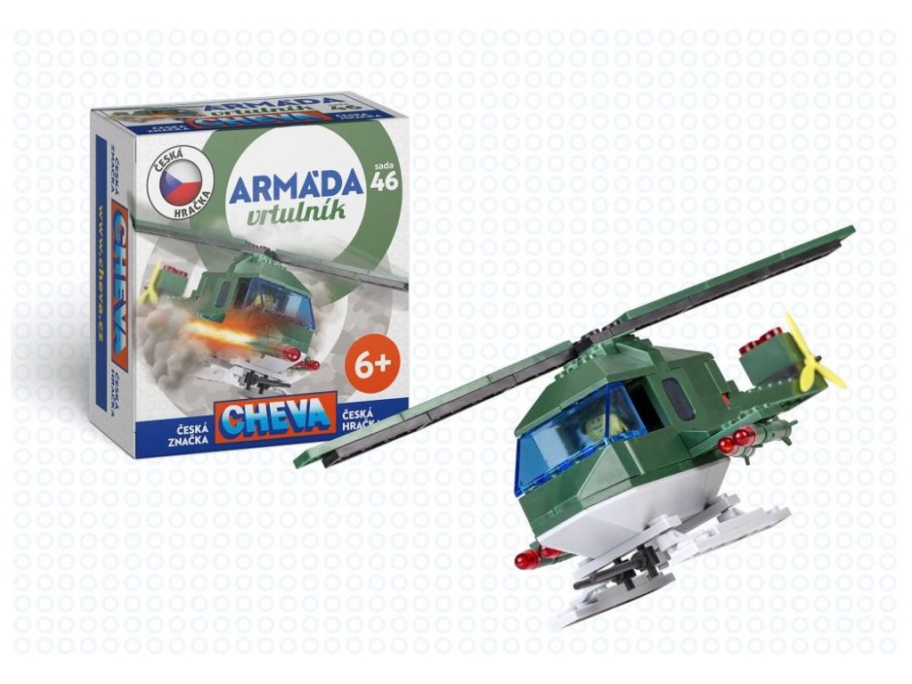 V balení naleznete podrobný návod pro sestavení velmi detailně propracovaného bojového vrtulníku s posádkou. Obě vrtule se točí. Stavebnice je vyrobena z vysoce kvalitního plastu. CHEVA je variabilní polytechnická stavebnice složená z řady stavebních dílů a doplňků.