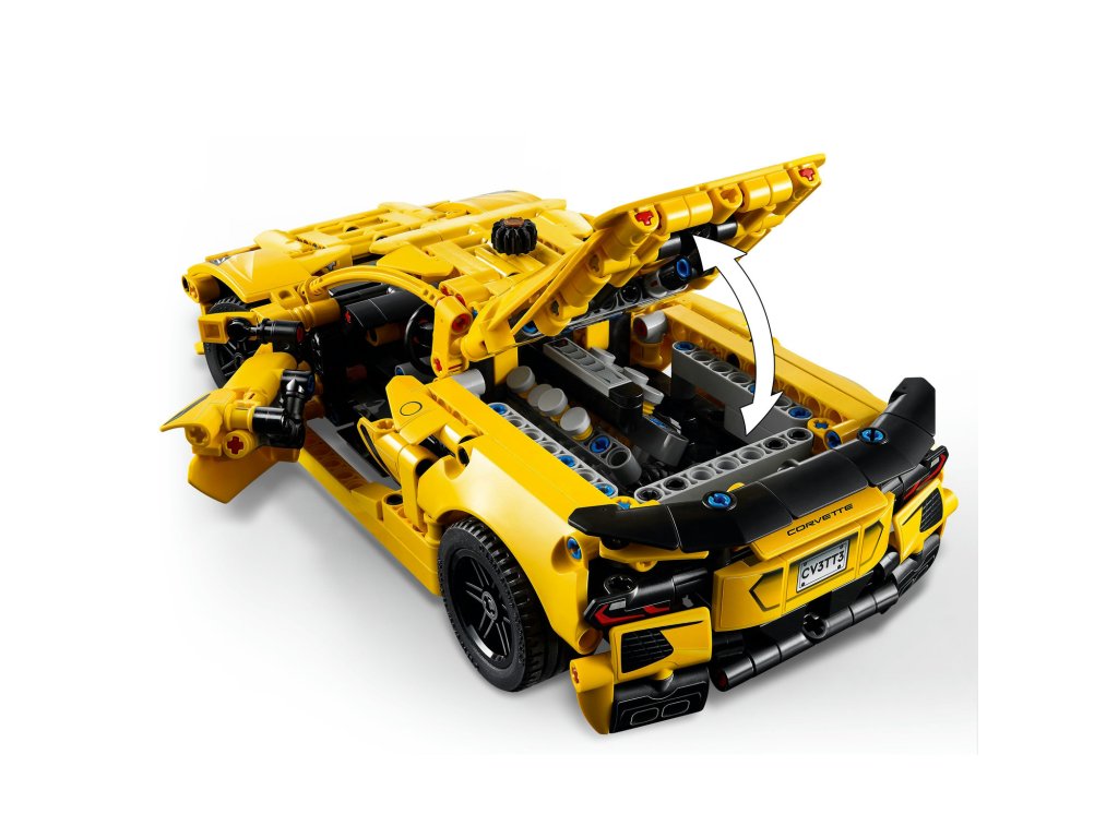 Realistické prvky – Tato stavebnice vozu Corvette se pyšní pohyblivými funkcemi s řízením, pohyblivým 8válcovým motorem, diferenciálem a otevíracími dveřmi a kapotou