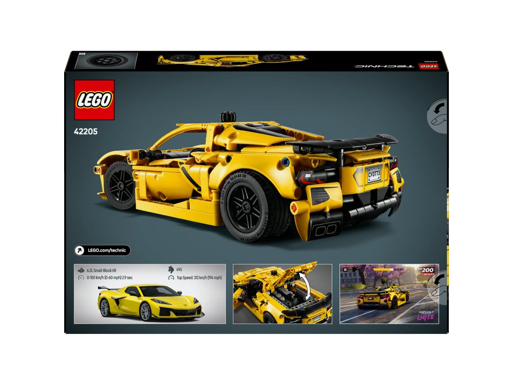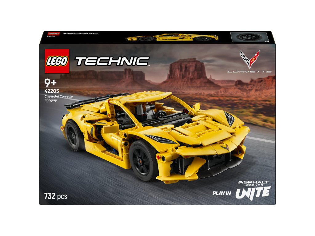 S touto propracovanou stavebnicí auta si děti od 9 let postaví vlastní model LEGO® Technic (42205) Chevrolet Corvette Stingray. Kluci, holky a milovníci rychlých aut si užijí spoustu zábavy při skládání realistických detailů a pak se pustí do prozkoumávání autentických prvků. Obdivujte úžasné barevné schéma vozu a pohybující se 8válcový motor a diferenciál. Pomocí knoflíku řiďte auto, pak otevřete dveře a kapotu a pokochejte se interiérem.