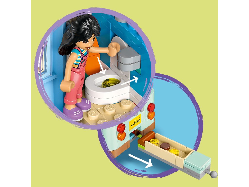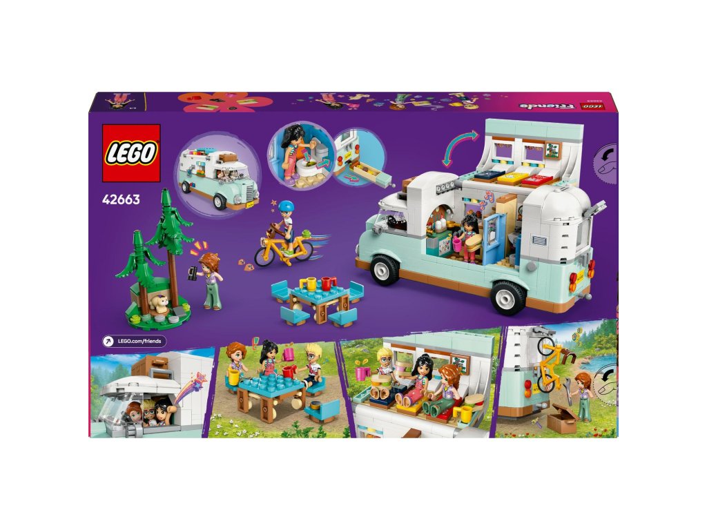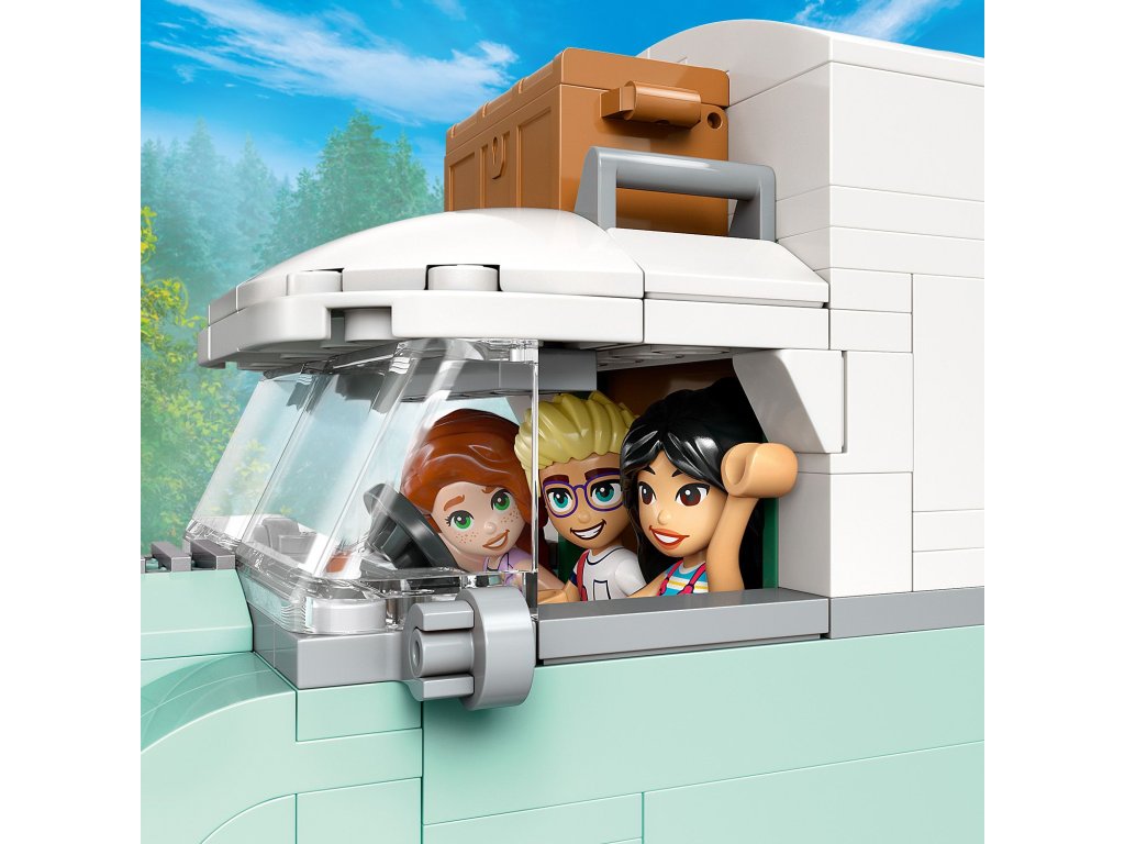 Holky a kluci od 7 let si se stavebnicí LEGO® Friends (42663) Dobrodružství s karavanem přátelství užijí spoustu zábavy. Sada obsahuje sestavitelné vozidlo LEGO, 3 minipanenky a figurku fretky. V této stavebnici karavanu pro děti najdete vše, co malí průzkumníci potřebují k vyprávění vlastních příběhů o kempování. Kamarádi sedí v kabině řidiče a hledají dokonalé místo na zaparkování v lese. Otevřete karavan a odhalte vybavenou kuchyň a toaletu. Zaručeně uslyšíte chichot, když děti uvidí, jak po „spláchnutí“ záchodu mizí odpad! Schody vedou do prostoru na spaní, kde je postel pro každou ze 3 minipanenek. Mezi další detaily patří kolo, na kterém mohou postavičky jezdit, piknikový stůl s židlemi, venkovní sprcha a kempingové doplňky včetně kompasu, klíče a dalekohledu. Objevte další zábavné hračky ze světa LEGO Friends (prodávají se samostatně), ve kterých vás čeká spousta dalších příběhů o přátelství.