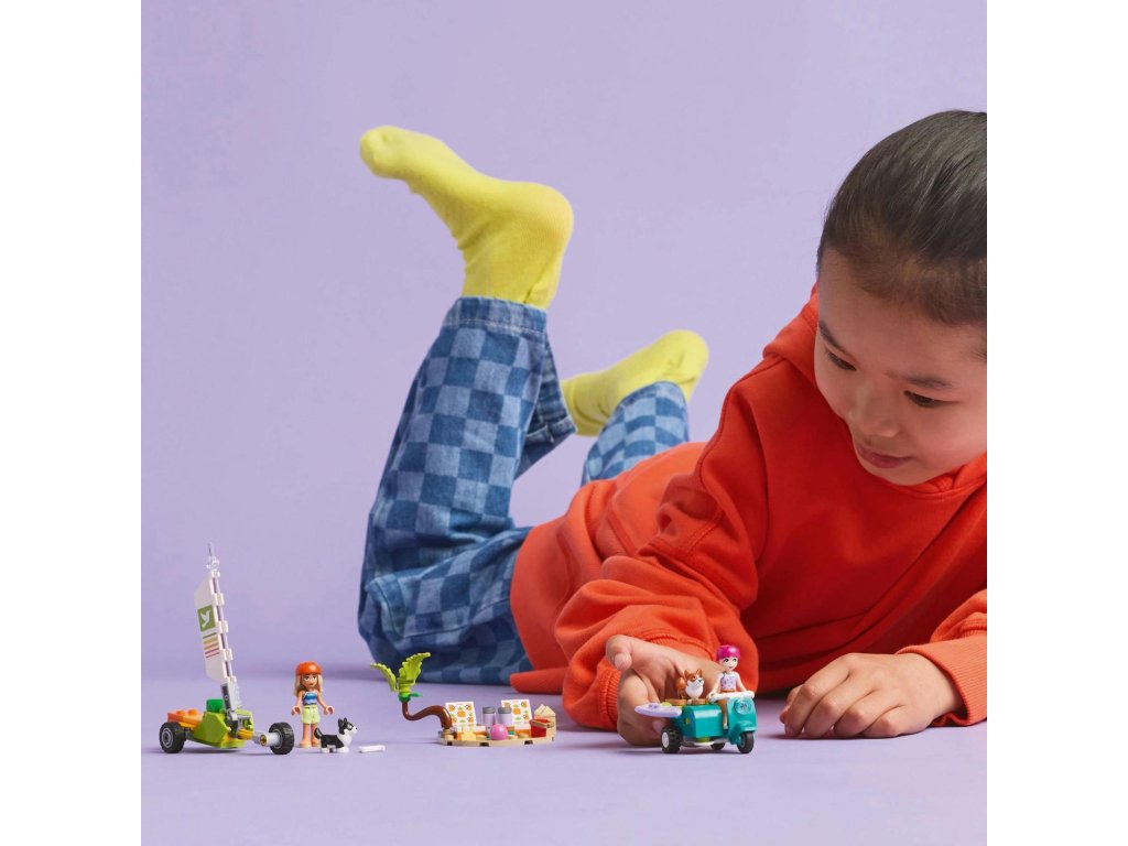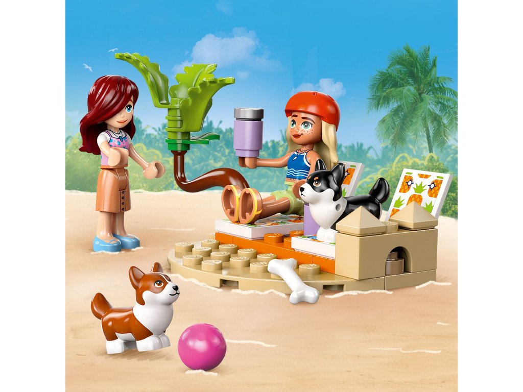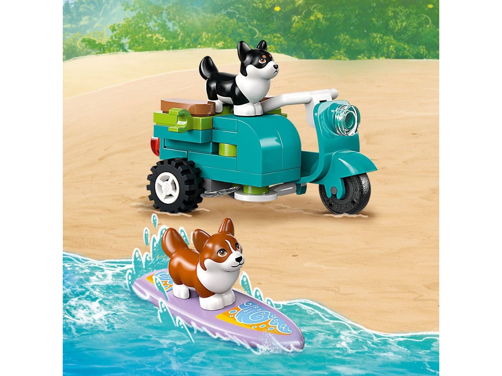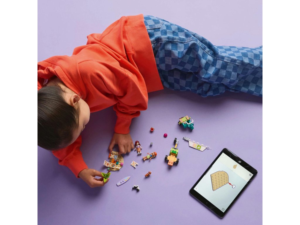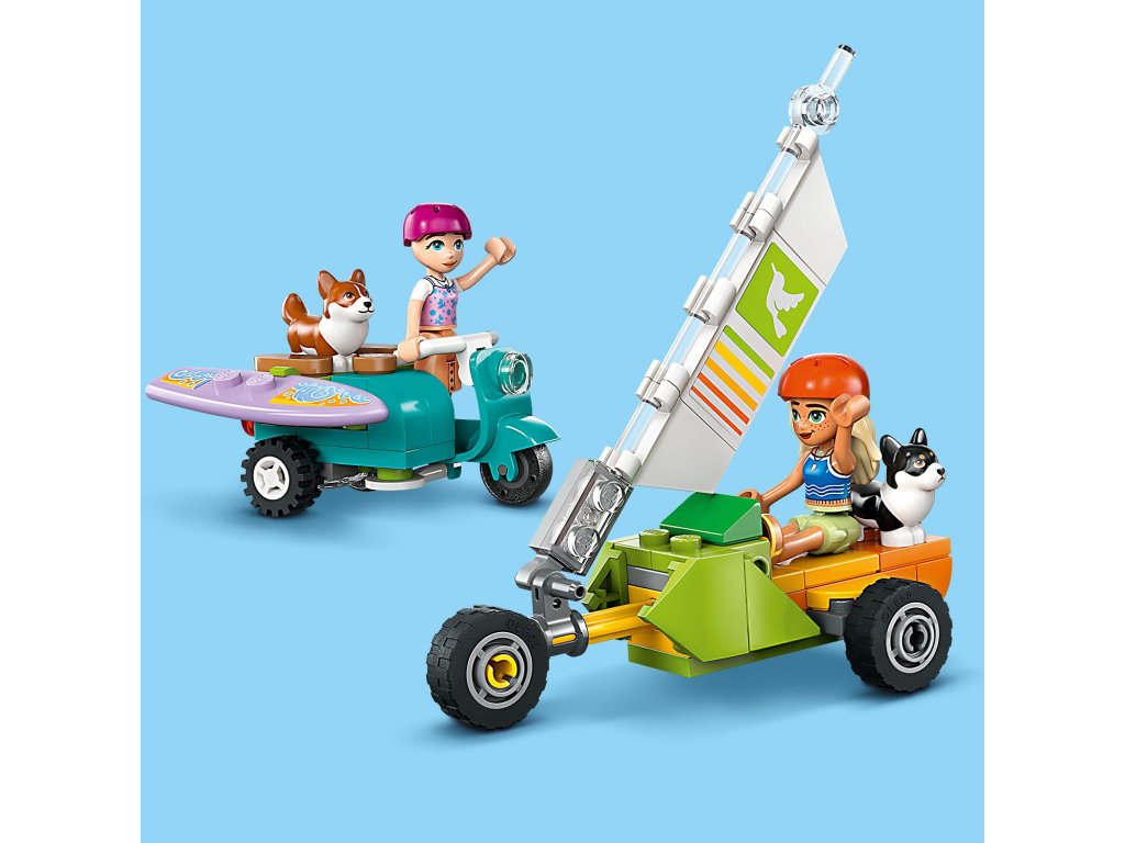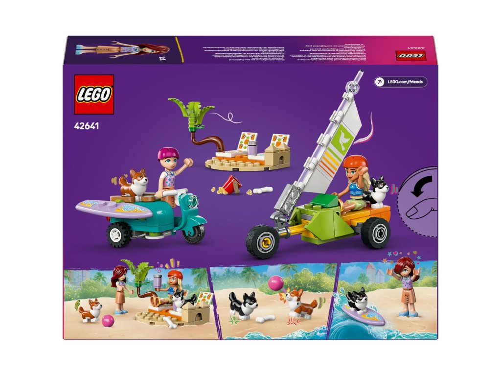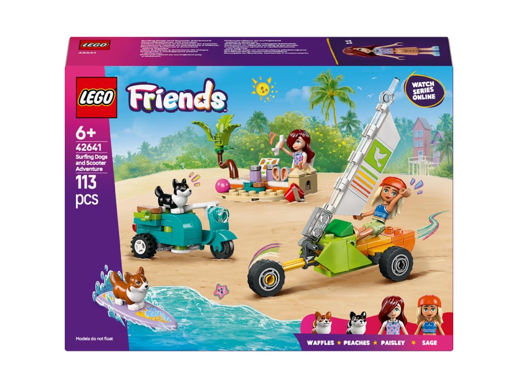 Vydejte se surfovat s touto stavebnicí pro holky, kluky a malé milovníky zvířat od 6 let. Inspirujte děti k vymýšlení vlastních dobrodružství na pláži se stavebnicí LEGO® Friends (42641) Dobrodružství se surfujícími psy a skútrem. Tato hračka obsahuje miniaturní surfovací prkno, skútr, pozemní jachtu a lehátka. Součástí jsou také 2 minipanenky LEGO Friends a 2 figurky pejsků corgi pro kreativní hraní. Stavebnice představuje skvělý dárek pro děti, které milují tvoření. Připojte se k Sage a Paisley, které se vydávají na pláž, kde si budou hrát se svými pejsky corgi. Kamarádky si odpočinou na lehátkách, zatímco pejsci se vystřídají v surfování. Pak si užijí jízdu na skútru nebo v pozemní jachtě, ve kterých je místo i pro pejska! Objevte další tipy na dárky ze světa LEGO Friends (prodávají se samostatně). Tato stavebnice je kompatibilní s aplikací LEGO Builder, která přináší intuitivní stavitelské dobrodružství. V ní mohou děti přibližovat a otáčet modely ve 3D, ukládat své stavebnice a sledovat svůj postup.