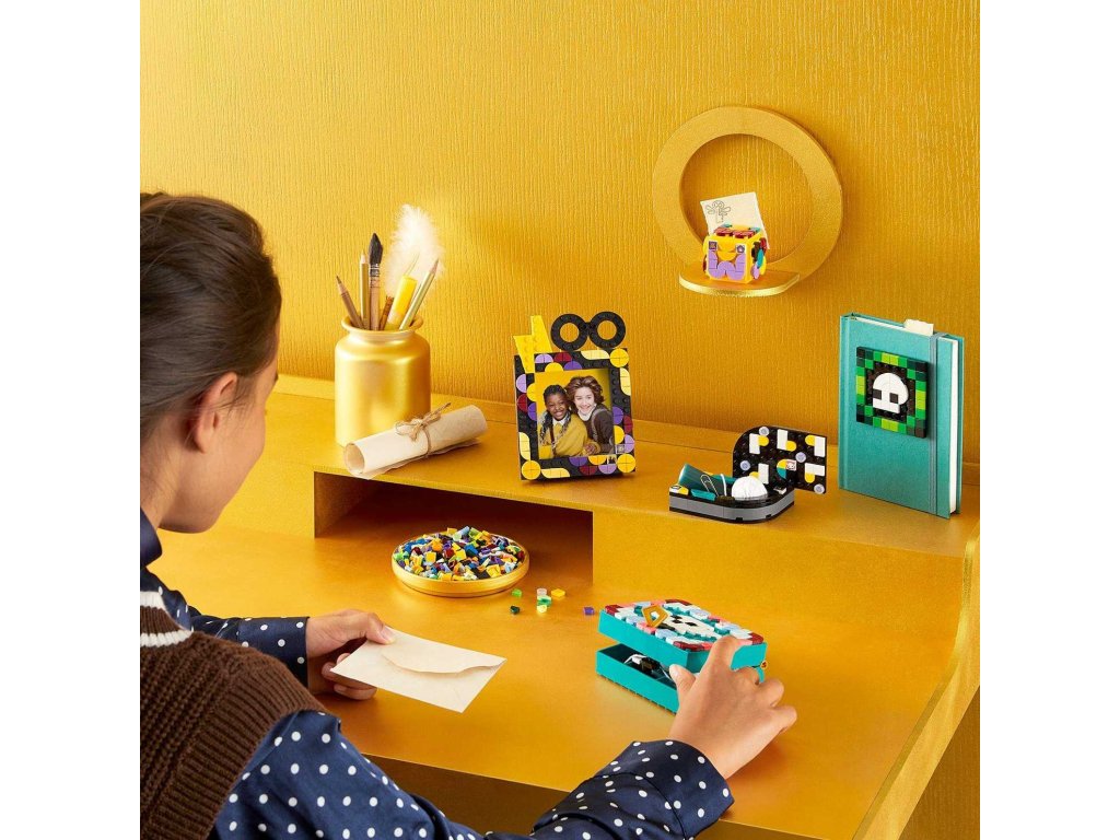 Sady DOTS seznámí děti se zábavným světem hraní s kostkami LEGO, zatímco si budou zdobit doplňky dle vlastních kouzelných nápadů. Umožněte dětem dát průchod jejich vášni pro umění a design a pomozte jim uklidit si na stole s touto parádní sadou, která je ideální pro všechny školáky.