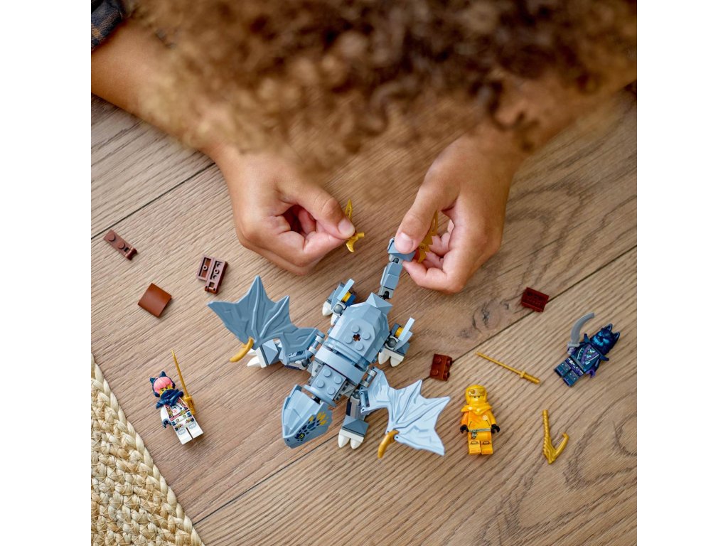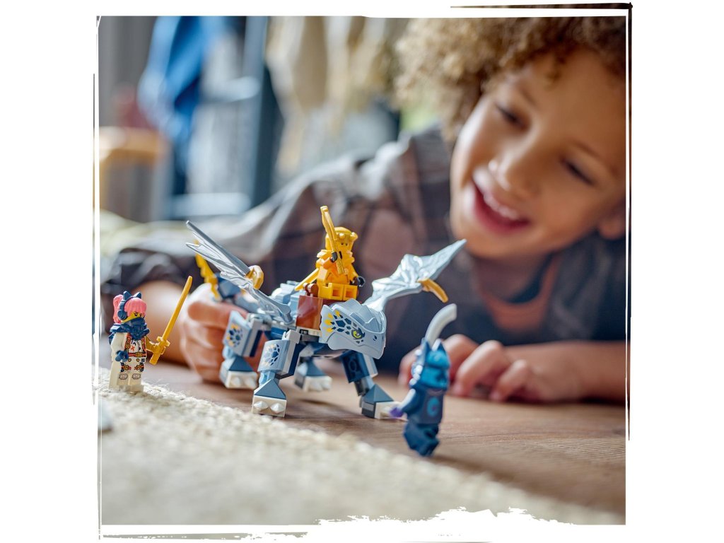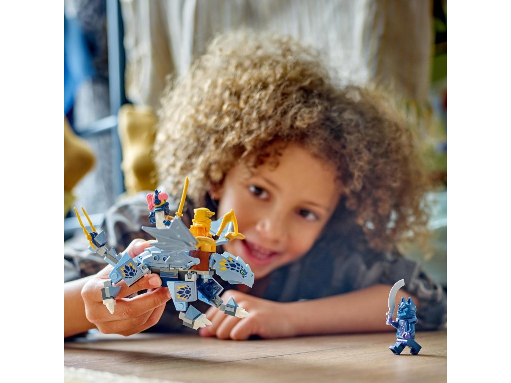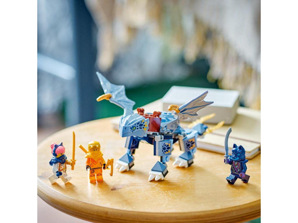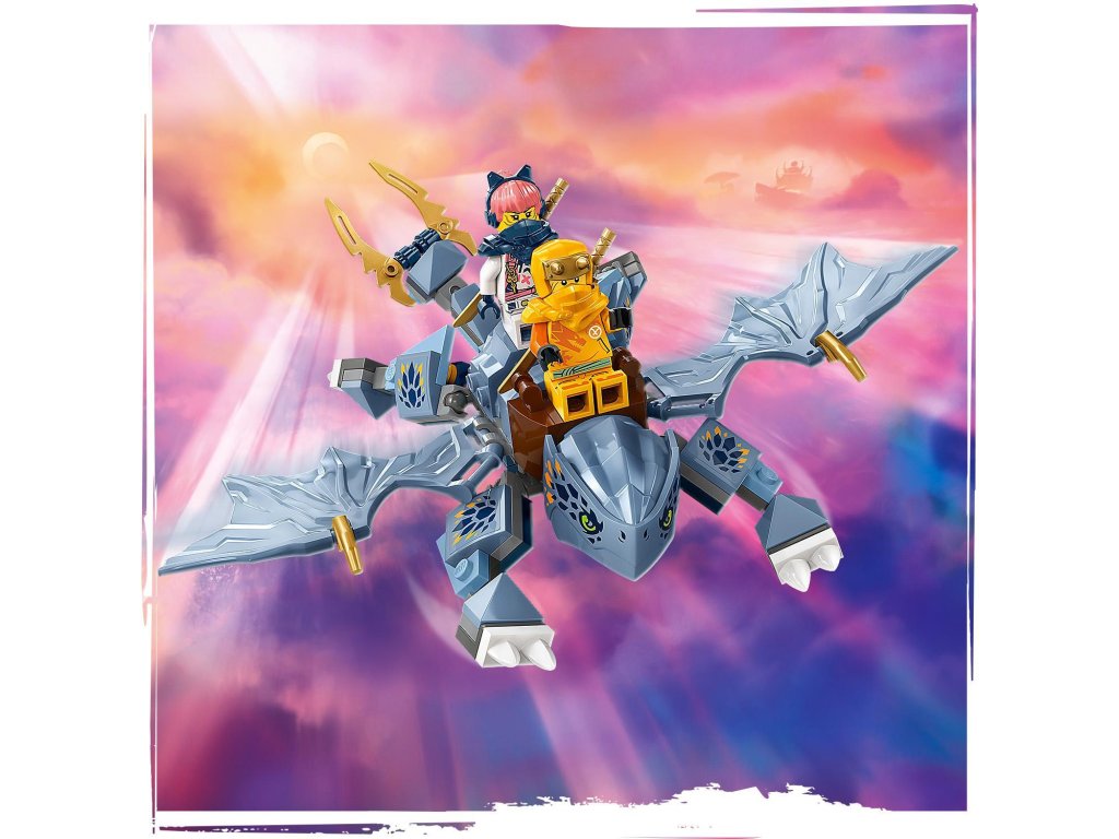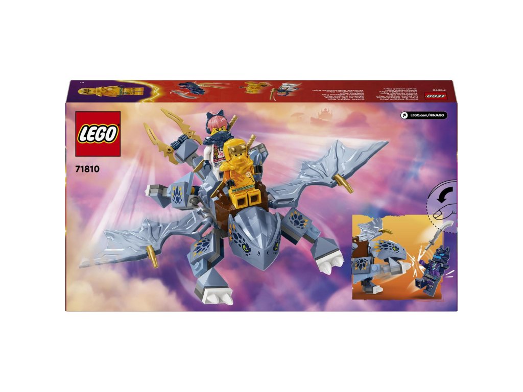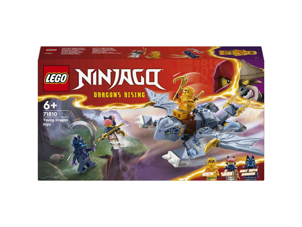 Děti od 6 let si se stavebnicí Dračí mládě Riyu (71810) připomenou scény ze hřbetu draka z 2. řady televizního seriálu NINJAGO® Dračí povstání. Součástí této stavebnice je model Dračího mláděte Riyu s pohyblivými křídly, nohama a ocasem a sedlem, na které lze usadit minifigurku.