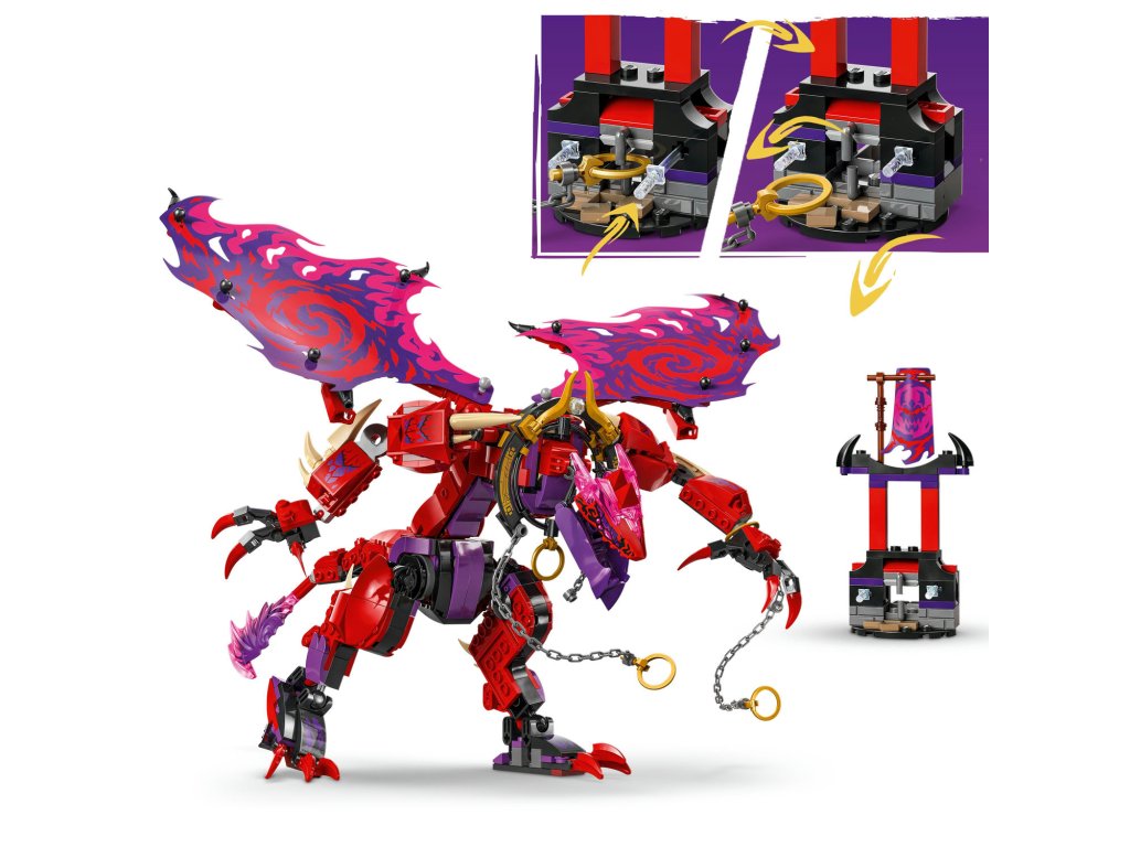 Rozměry – Tato stavebnice LEGO® NINJAGO® se skládá z 668 dílků a figurka Draka chaosu Thunderfanga měří přes 24 cm na výšku