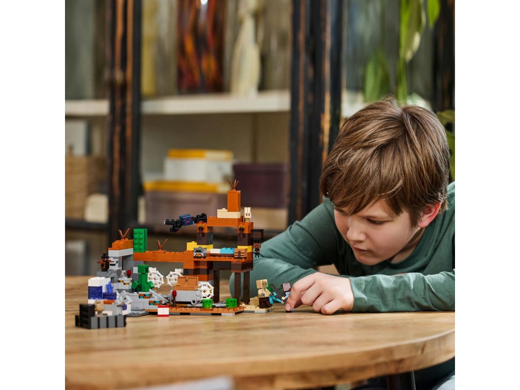 Dětská stavebnice s dolem – Vydejte se s figurkami Minecraft® do opuštěné Důlní šachty v pustině (21263). Stavebnice inspirovaná videohrou je vhodná pro děti od 8 let