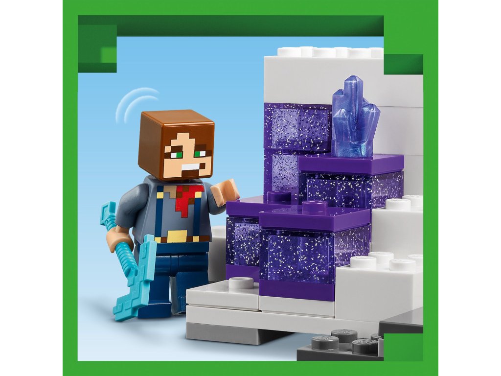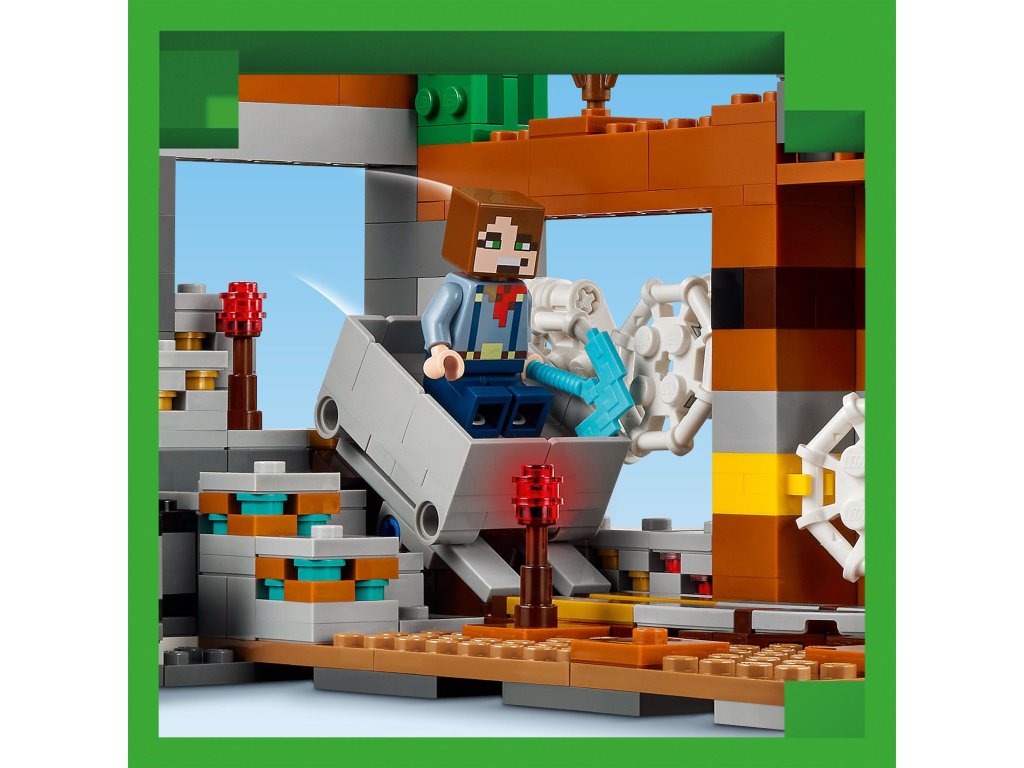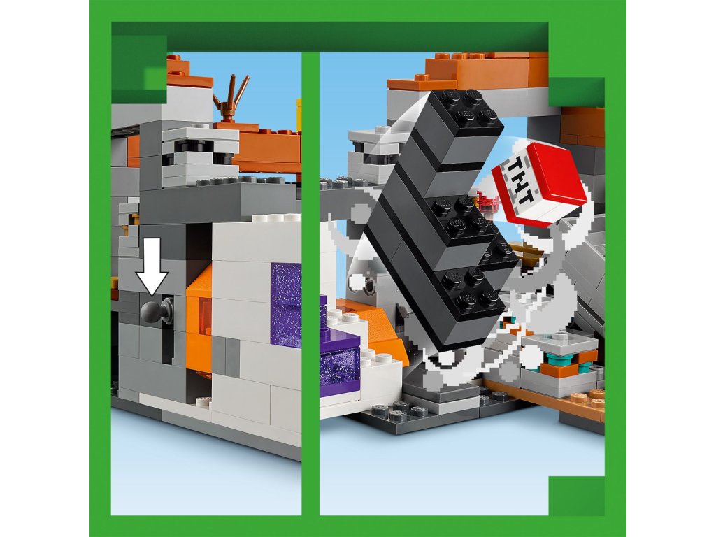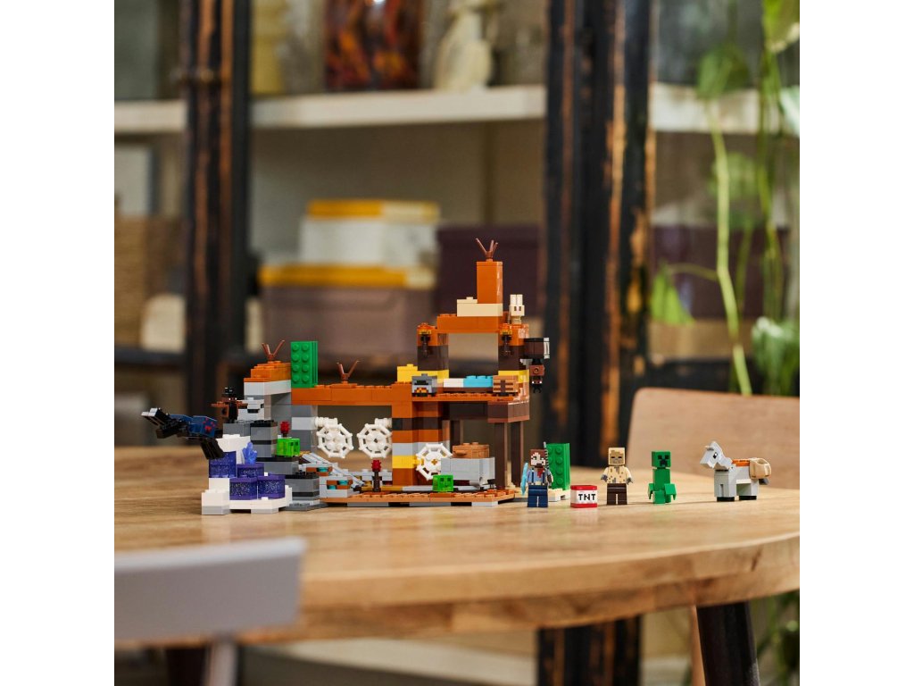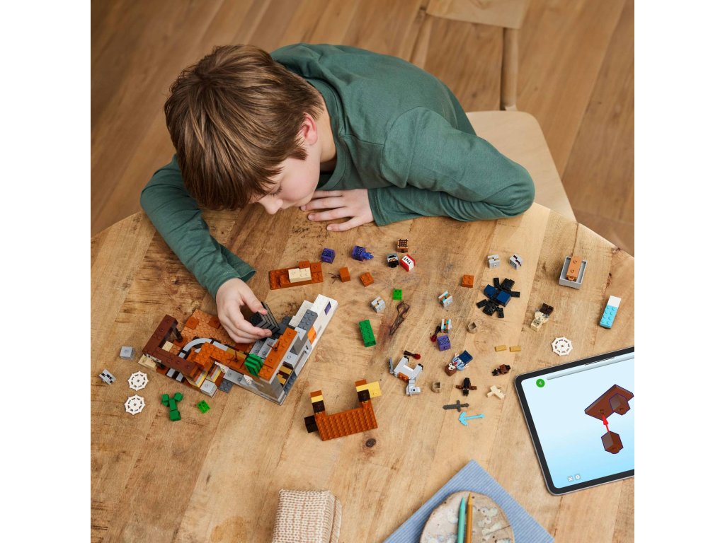 Děti se přidají k průzkumníkovi pustiny v opuštěné důlní šachtě v biomu pustiny, kde mezi kamení umístí TNT. Použijí funkci exploze a odhalí měď, zlato, rudit a krystaly ametystu. Pomohou mu naplnit důlní vozík a vydají se po trati ven z šachty. Dál pojedou na oslíkovi (s velkými zavazadly na sedlo) a zamíří k průzkumníkově základně, kde najdou postel a výbavu na tvoření. Cestou odrazí útok jeskynního pavouka Minecraft, Creepera, huska a 2 slizů. Stavitelé mohou přibližovat, otáčet modely ve 3D a sledovat svůj pokrok pomocí zábavné a intuitivní aplikace LEGO® Builder.